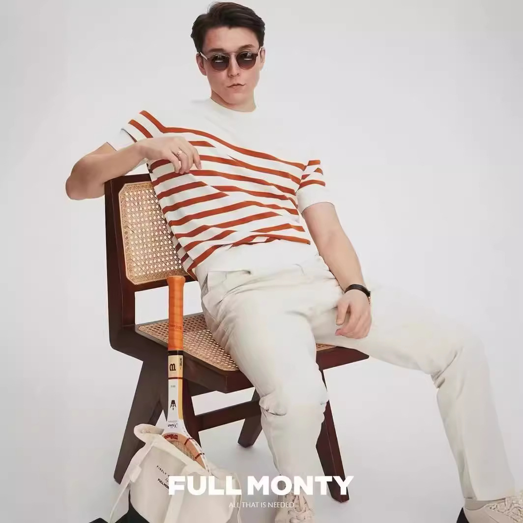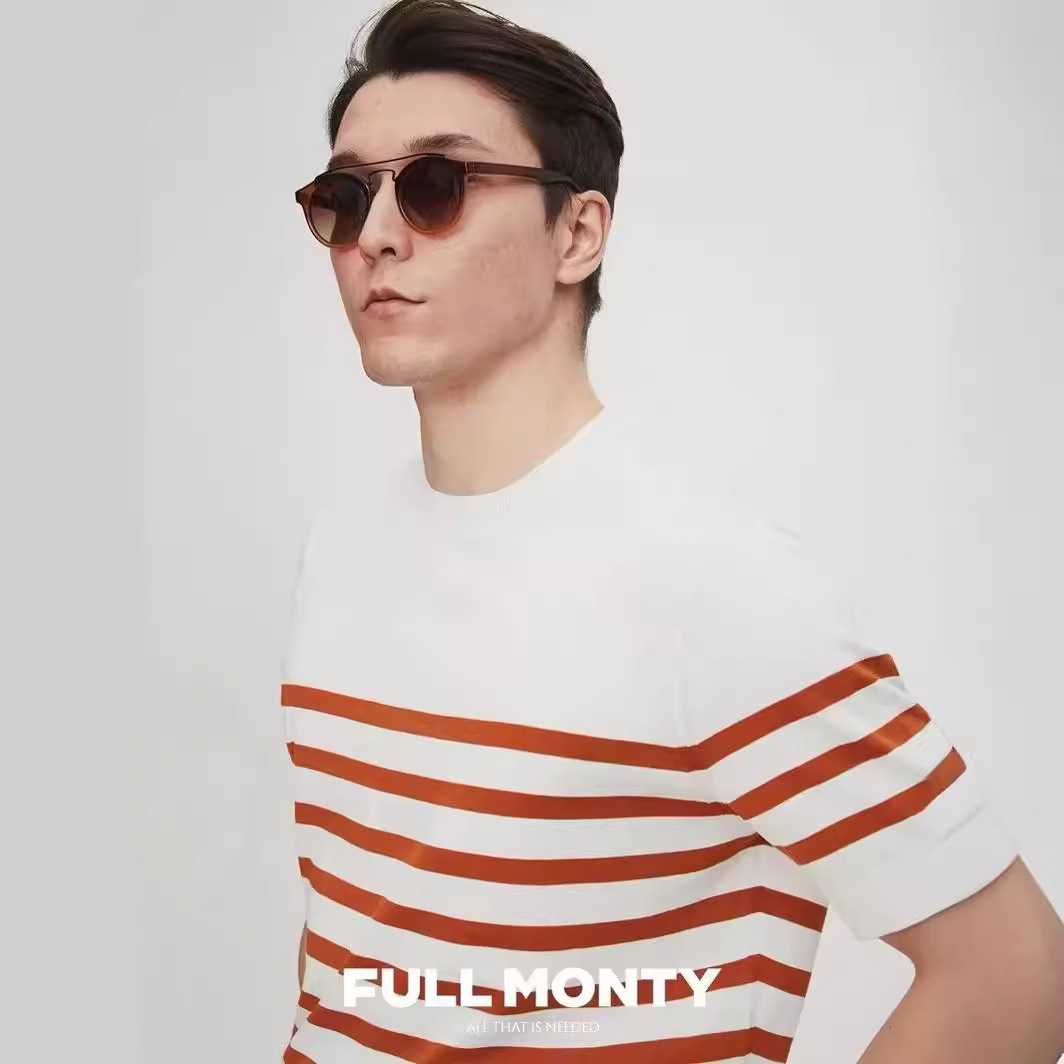 男士条纹圆领针织T恤空调夏季潮流轻熟休闲男装宽松复古百搭上衣