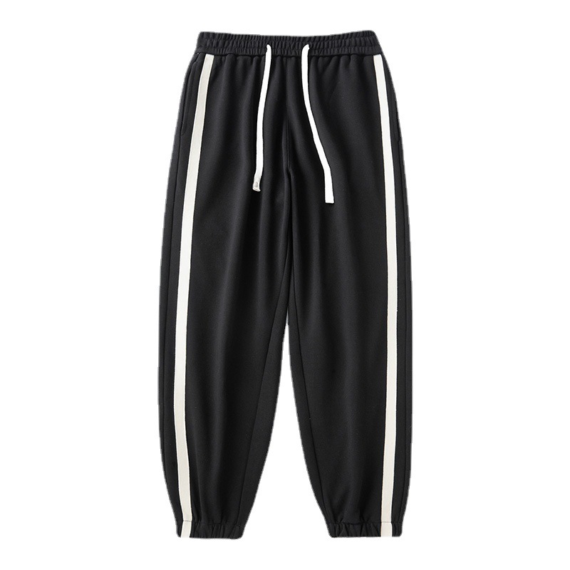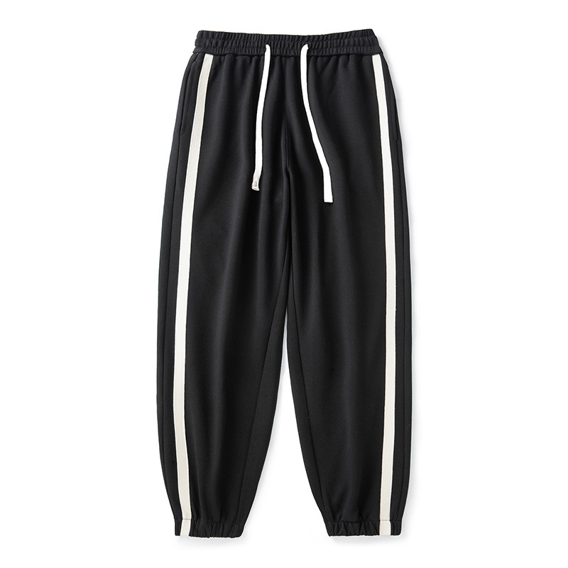 春夏新款宽松日系男装黑色休闲纯色长裤棉质运动裤