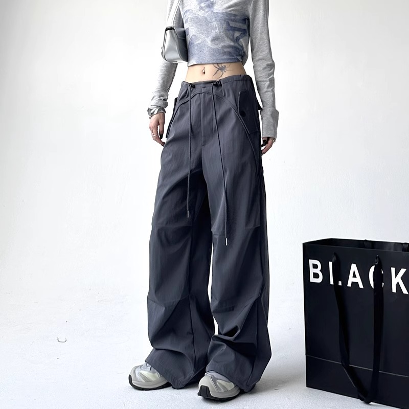 美式复古工装裤女新款阔腿裤夏季薄款宽松休闲直筒裤子潮