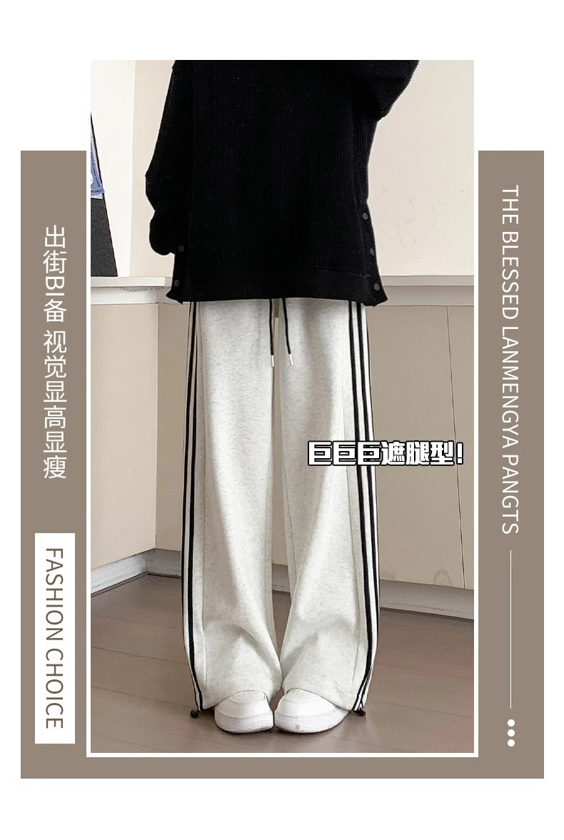 灰色运动裤女夏季新款宽松条纹薄款直筒阔腿裤小个子休闲卫裤