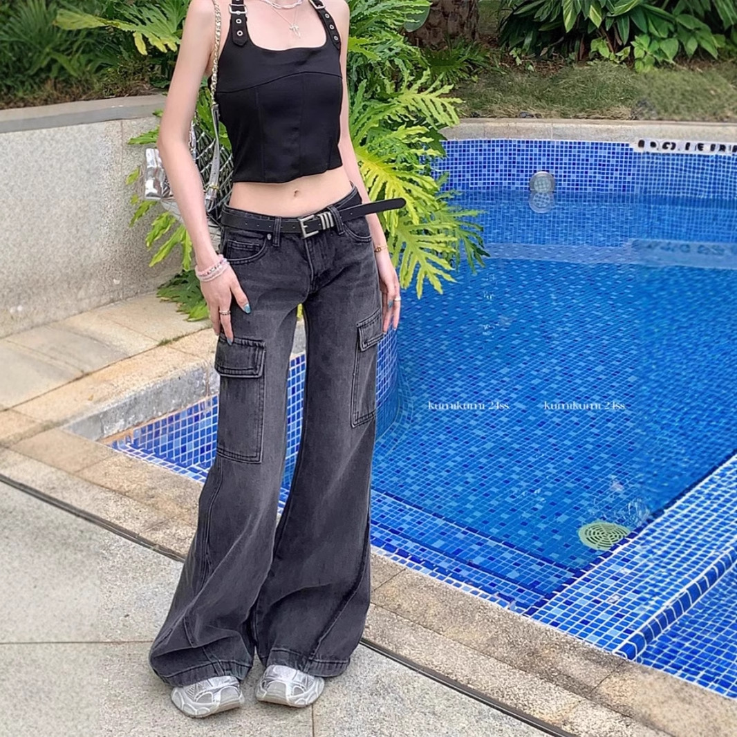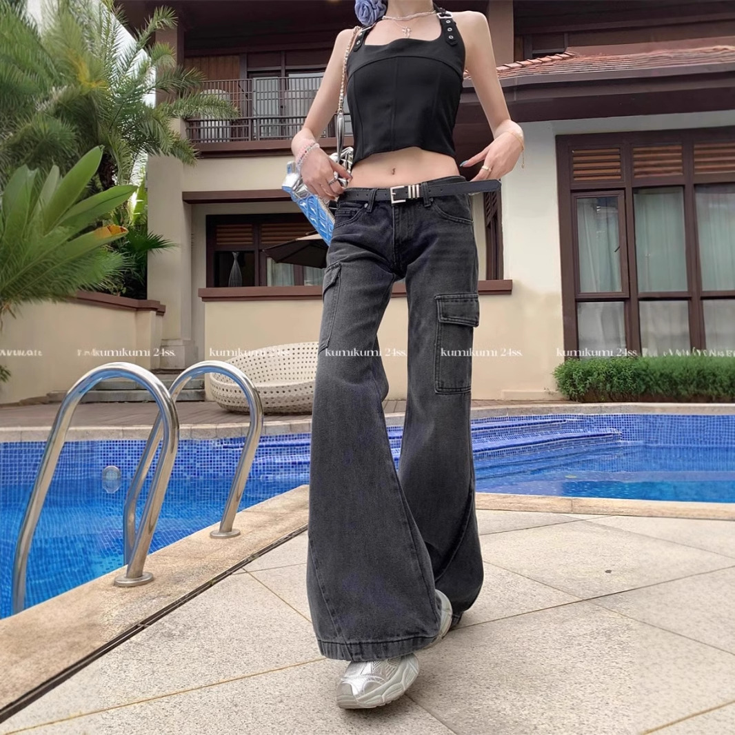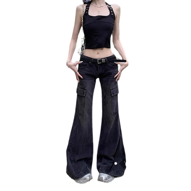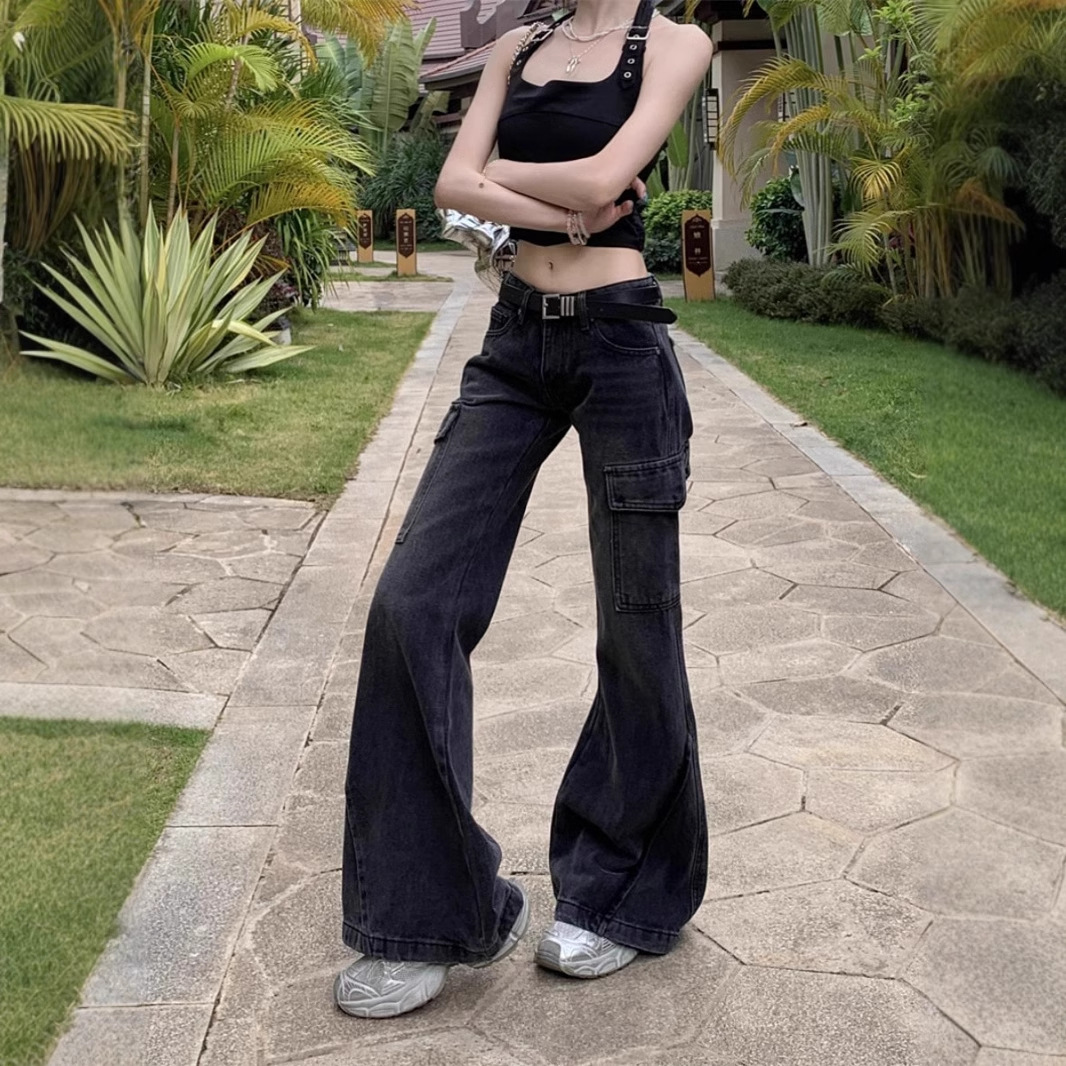美式y2k辣妹中腰微喇叭工装牛仔裤女设计感修身超显瘦直筒休闲裤