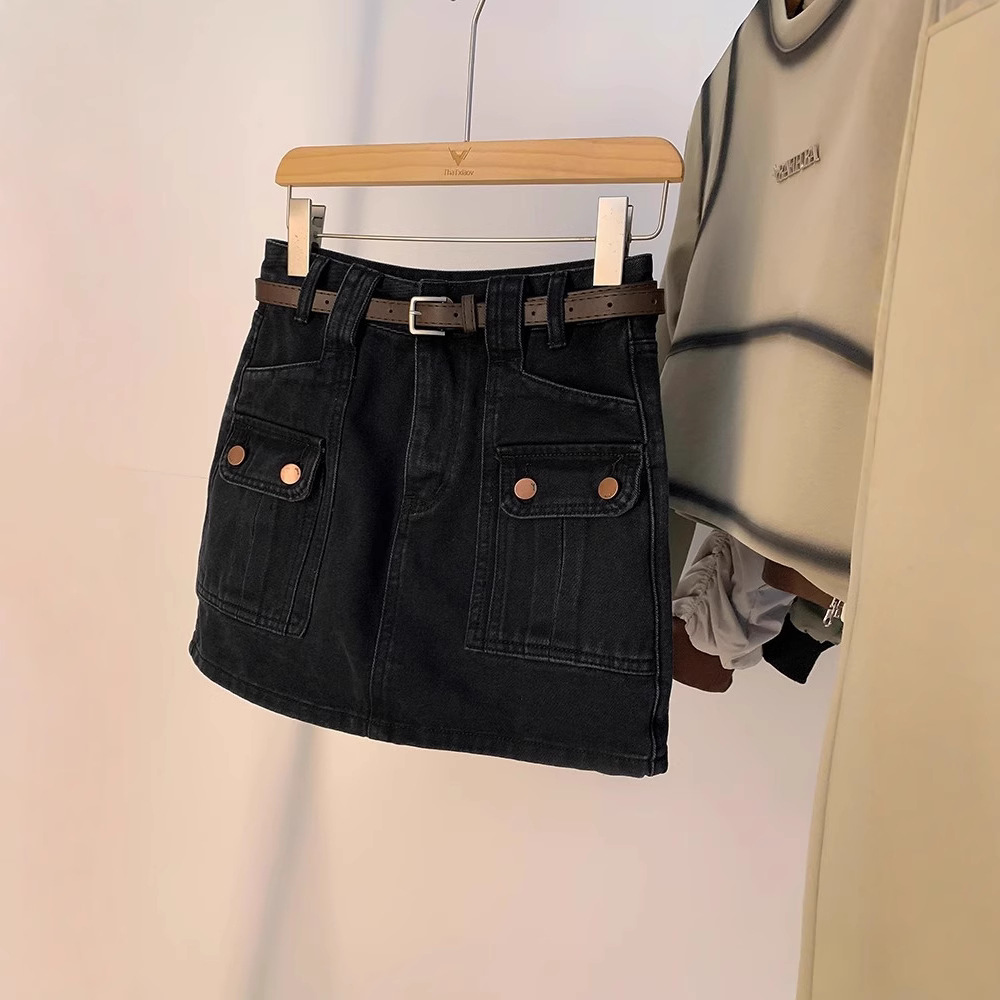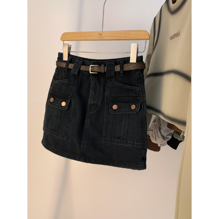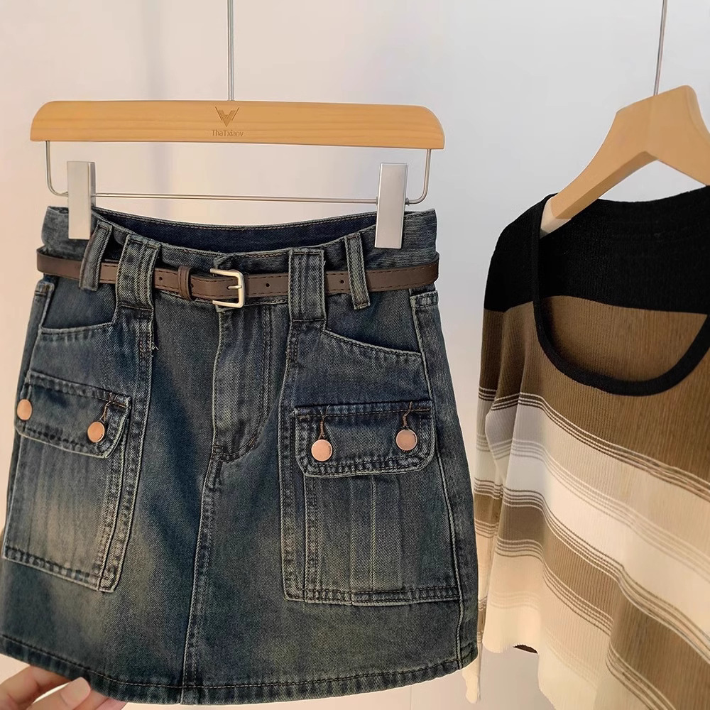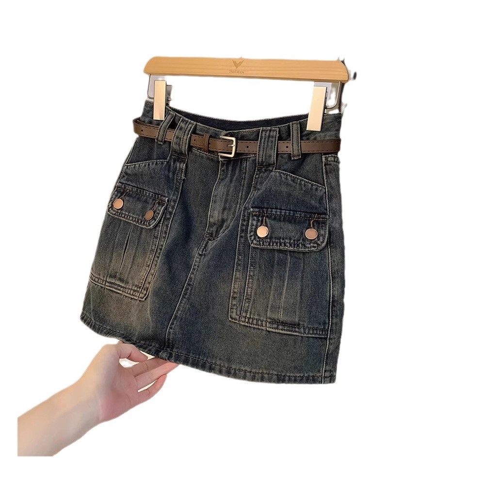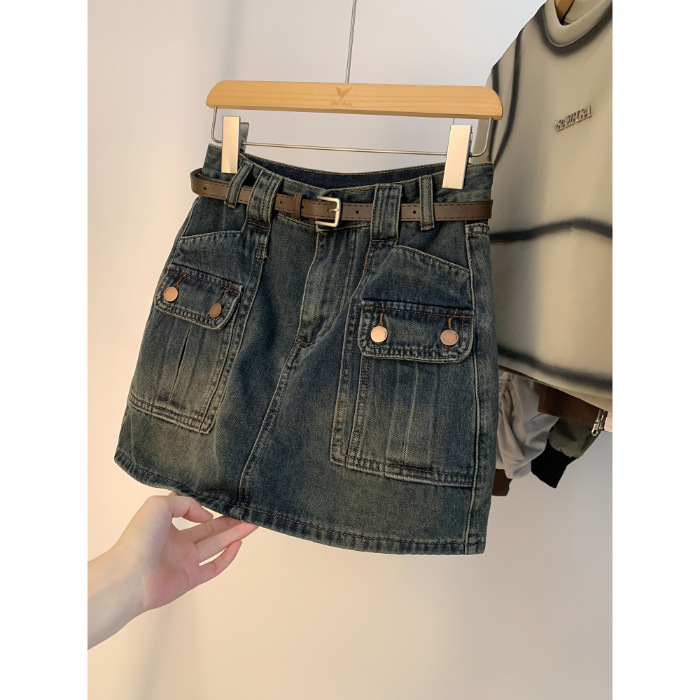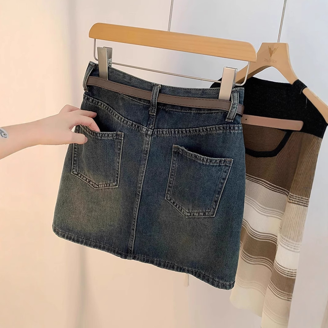 牛仔半身裙女新款高腰显瘦a字设计感小众复古包臀短裙