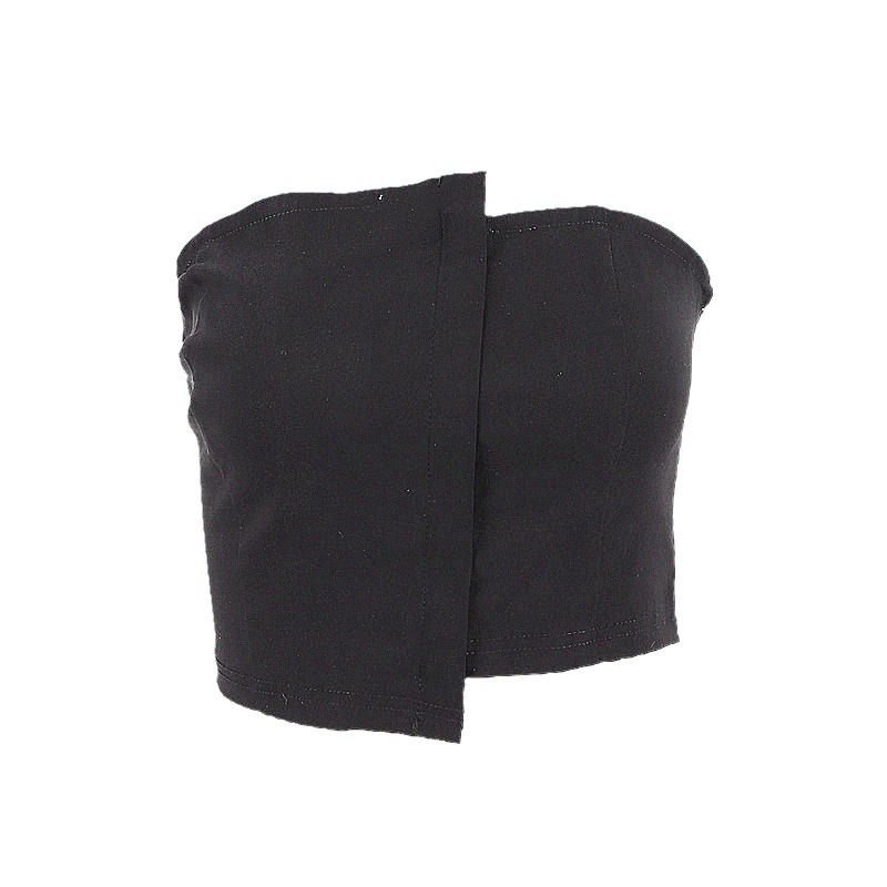 港风复古露背性感不规则黑色抹胸女春夏纯色气质修身短款内搭上衣