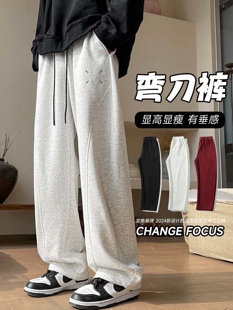 马吉拉休闲裤子男春夏潮牌拼接直筒弯刀卫裤美式高街阔腿长裤
