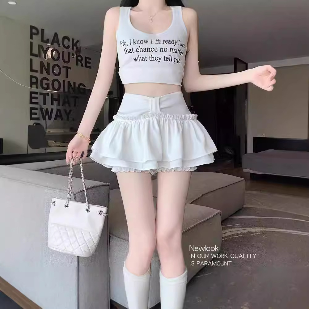 芭蕾蓬蓬裙纯欲辣妹半身裙春夏新款裤裙黑色a字超短裙辣妹低腰