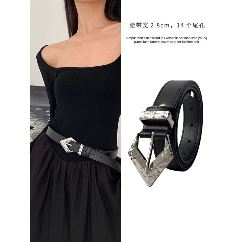 新款高级感女士皮带百搭针扣个性腰带简约时尚黑色装饰裤带潮