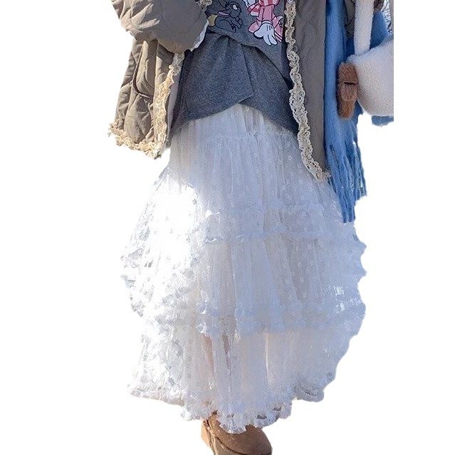 超仙绝美蕾丝花边半身裙甜美氛围感公主蓬蓬蛋糕长裙