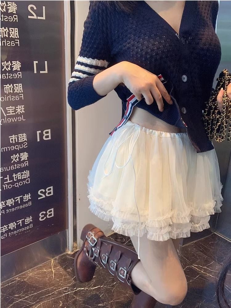芭蕾风半裙小个子白色御姐风短裙女重工蓬蓬裙夏季新款网纱低腰裙