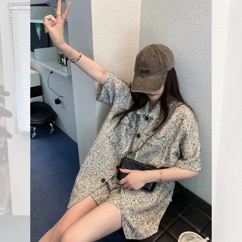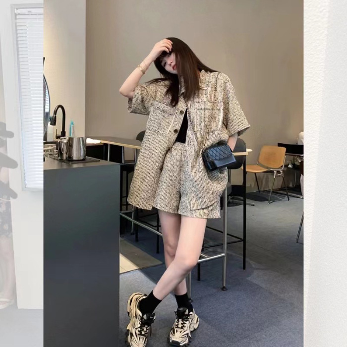 小个子气质小香学院风女款休闲时尚美式短袖上衣百搭短裤两件套