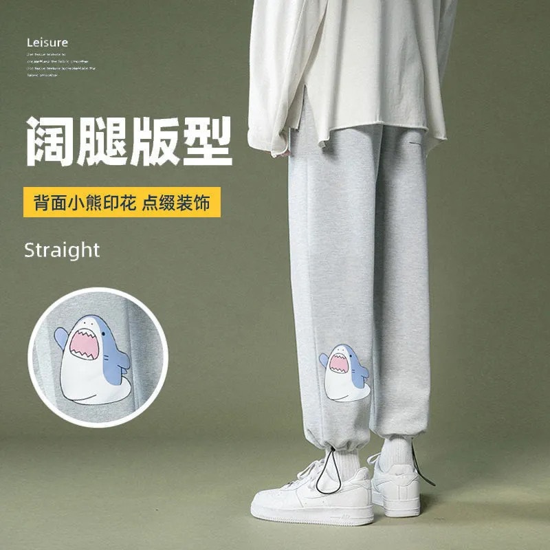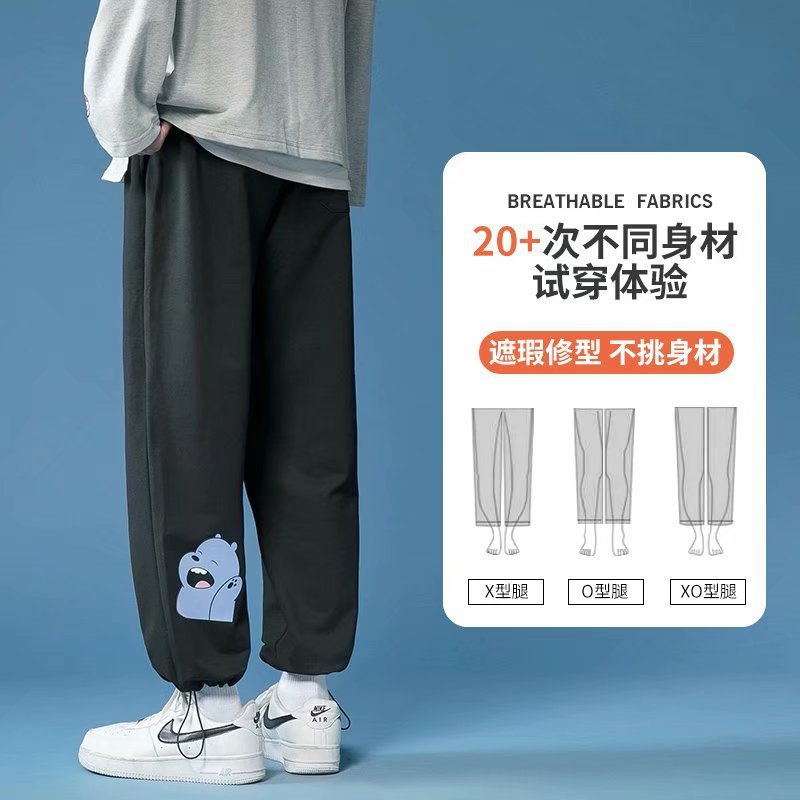 运动休闲裤子男夏季薄新款九分裤宽松抽绳束脚裤ins潮流学生卫裤