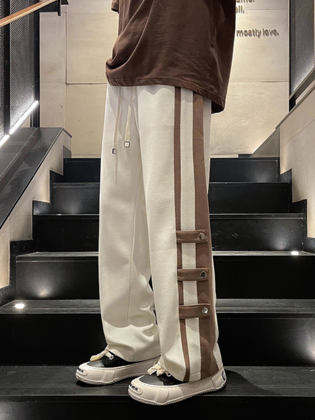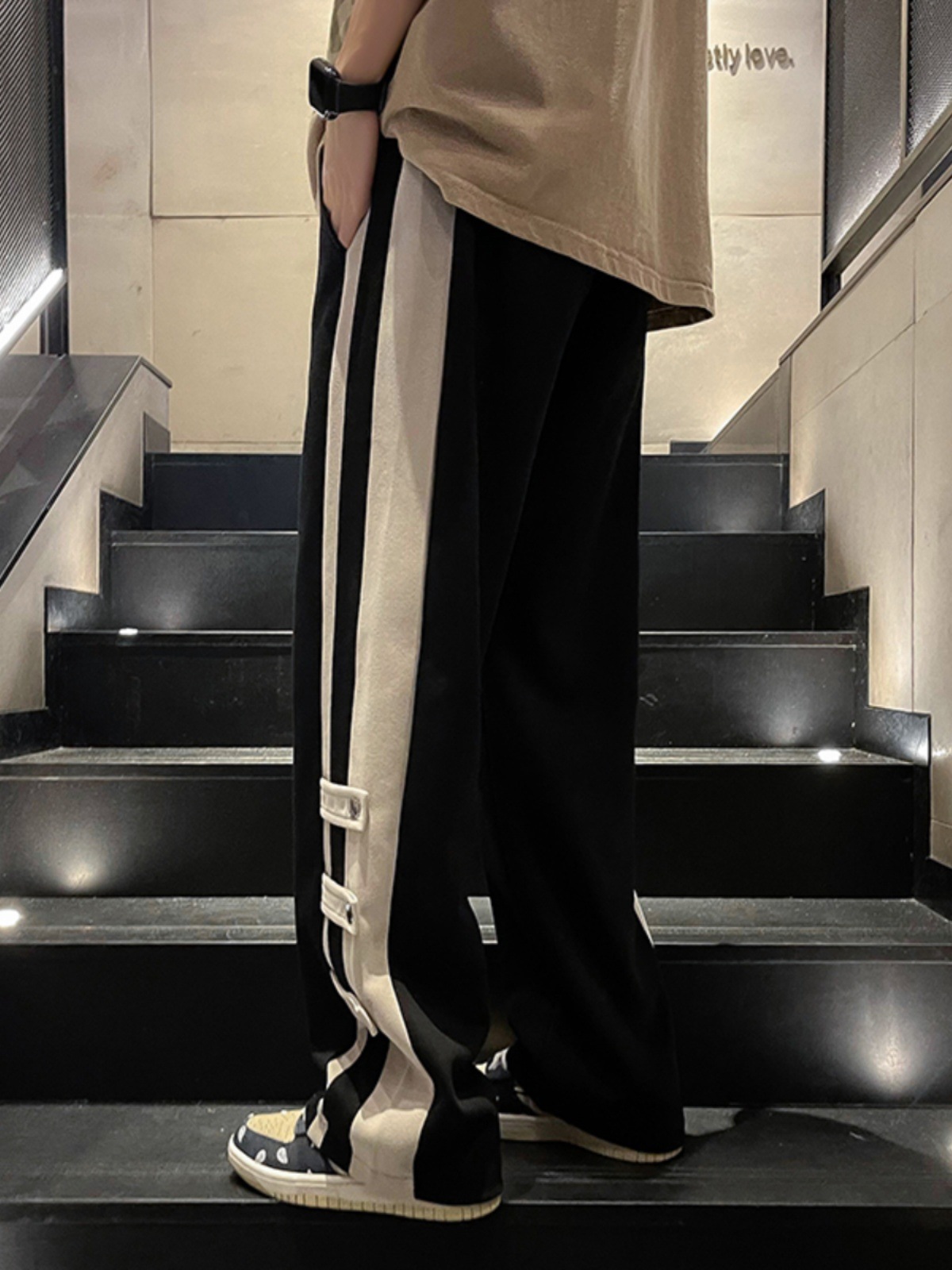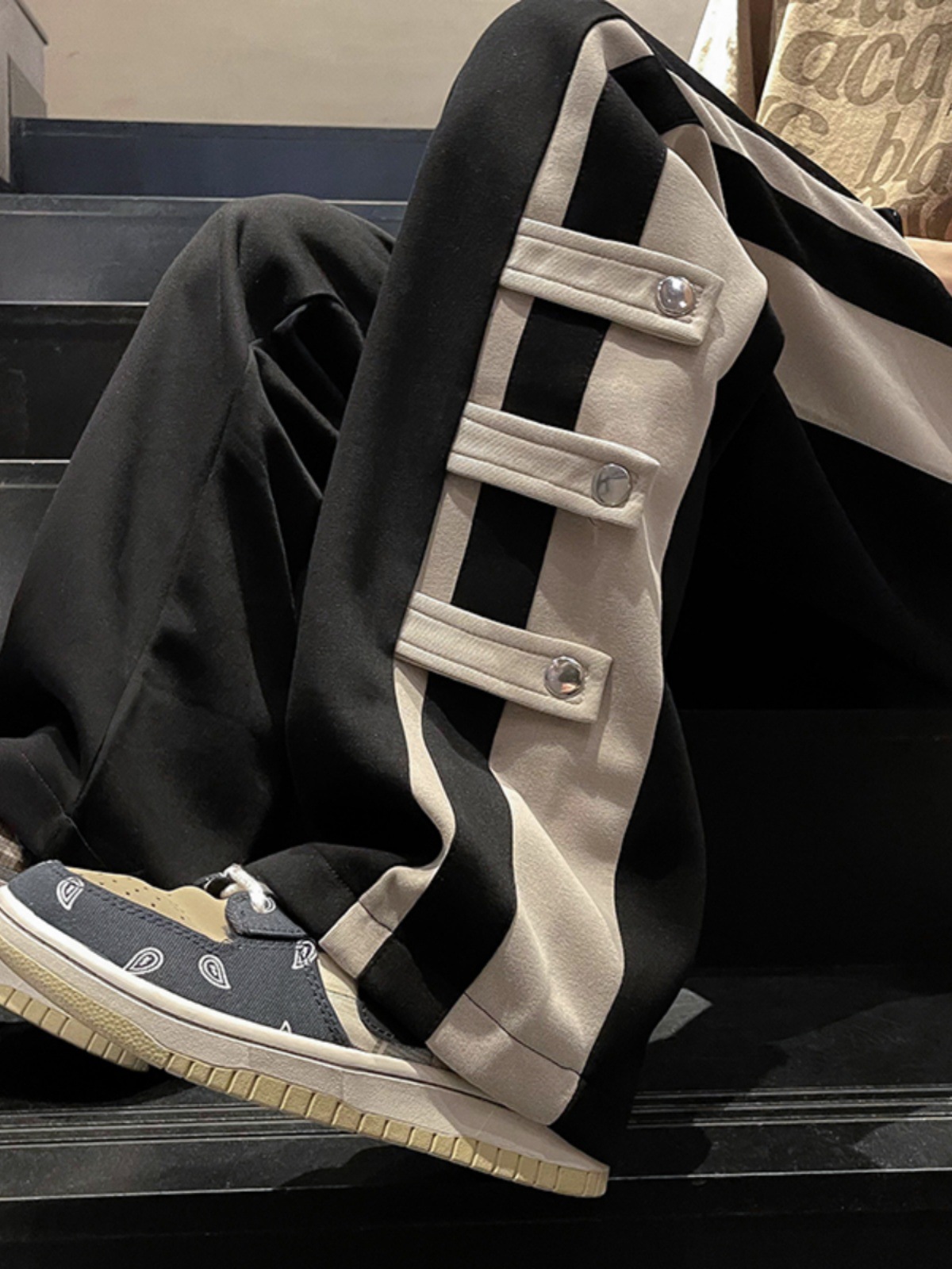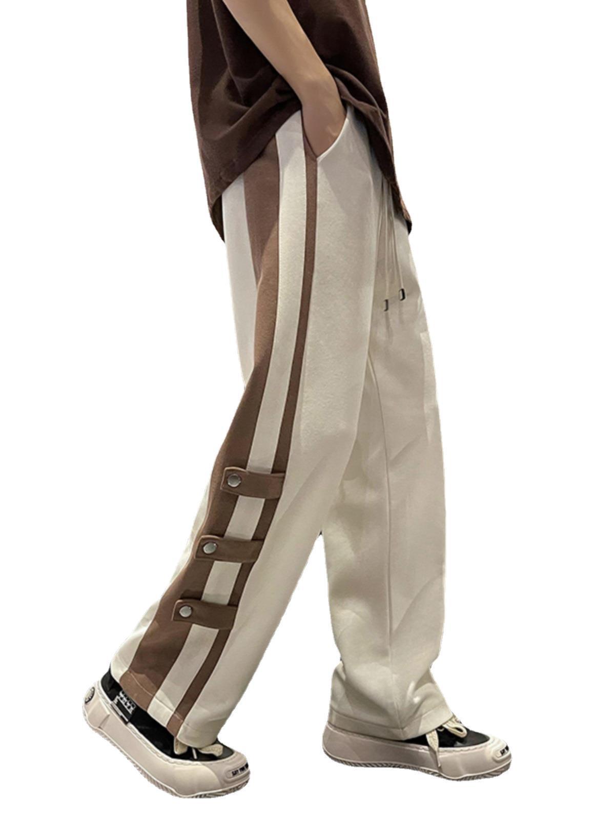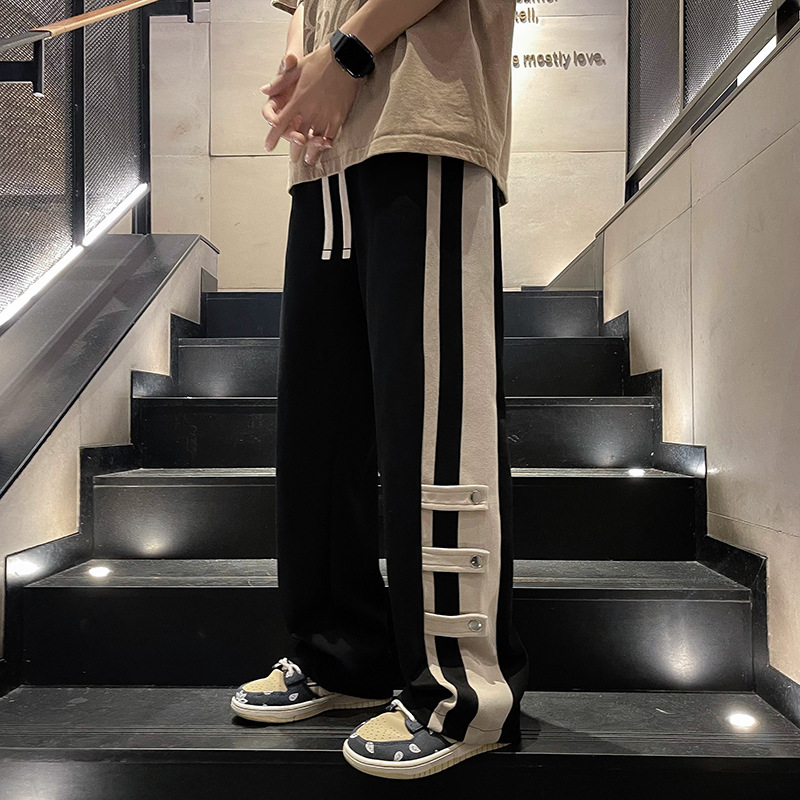 春季港风潮牌拼接撞色裤子男款直筒宽松vibe美式高街阔腿休闲卫裤