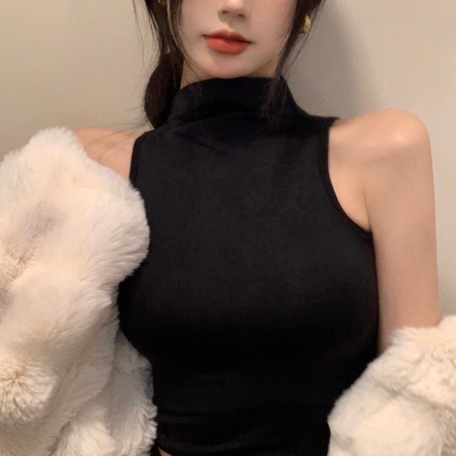穿搭辣妹半高领内搭无袖上衣设计感显瘦背心打底衫