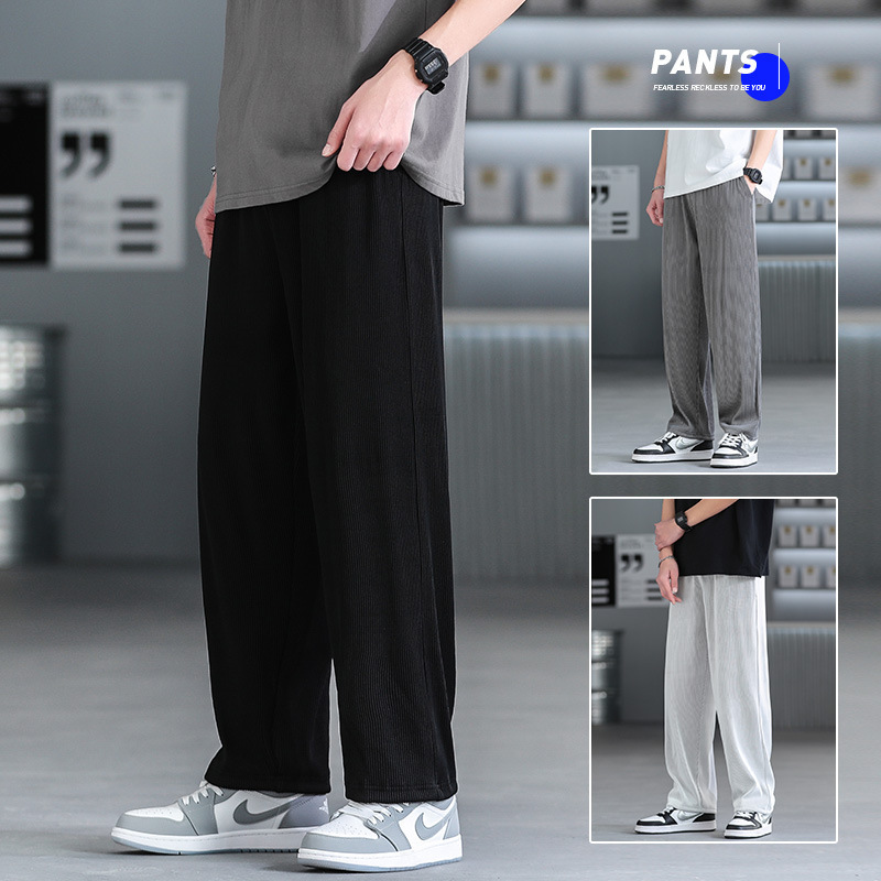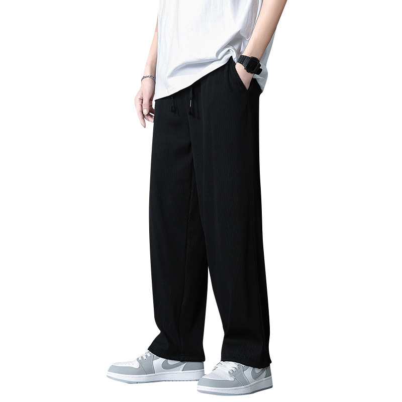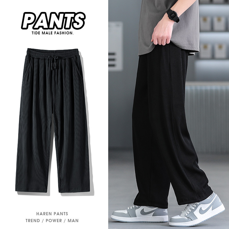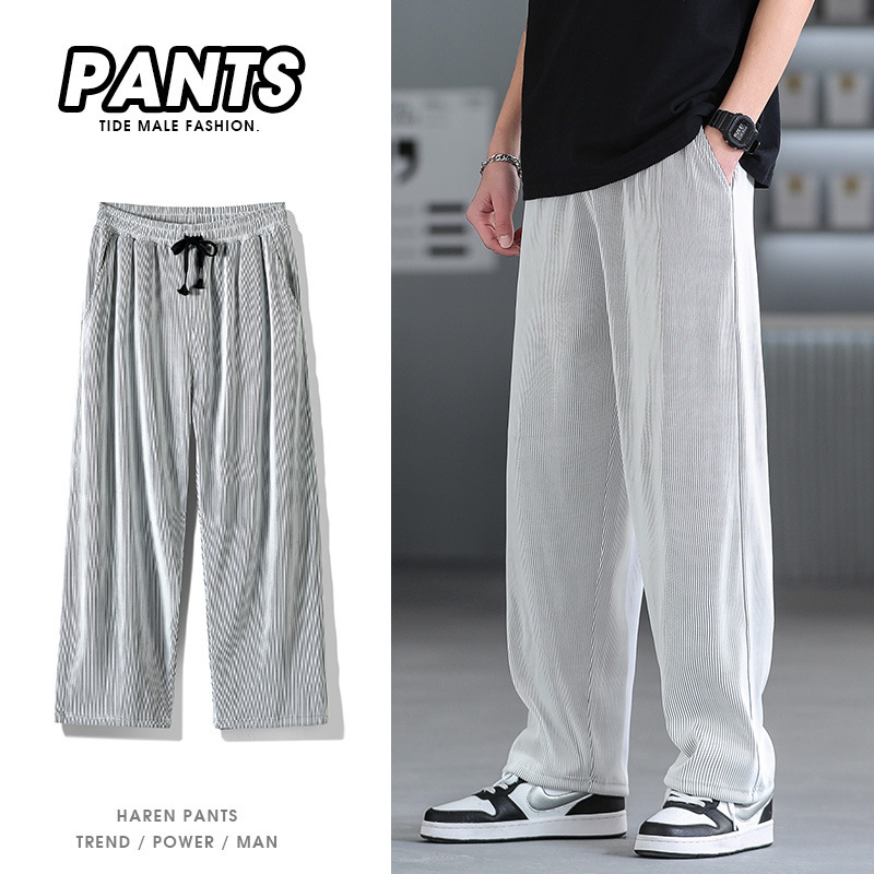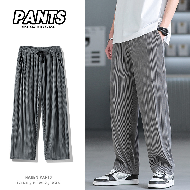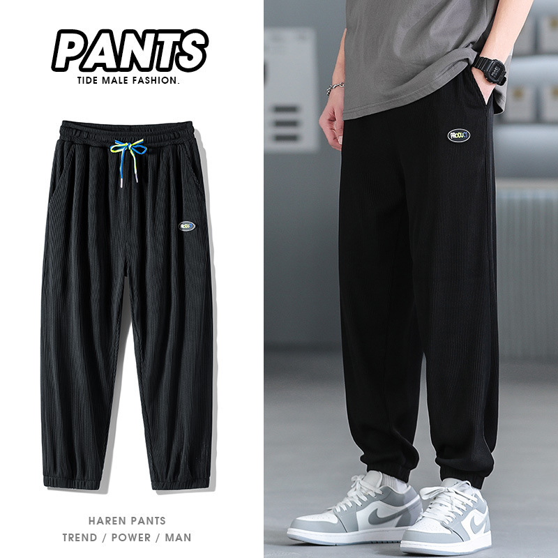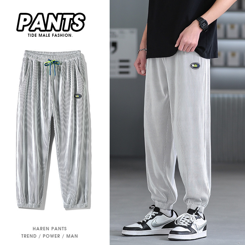 夏季冰丝裤子薄款男士宽松肥佬大码束脚运动长裤潮直筒休闲裤