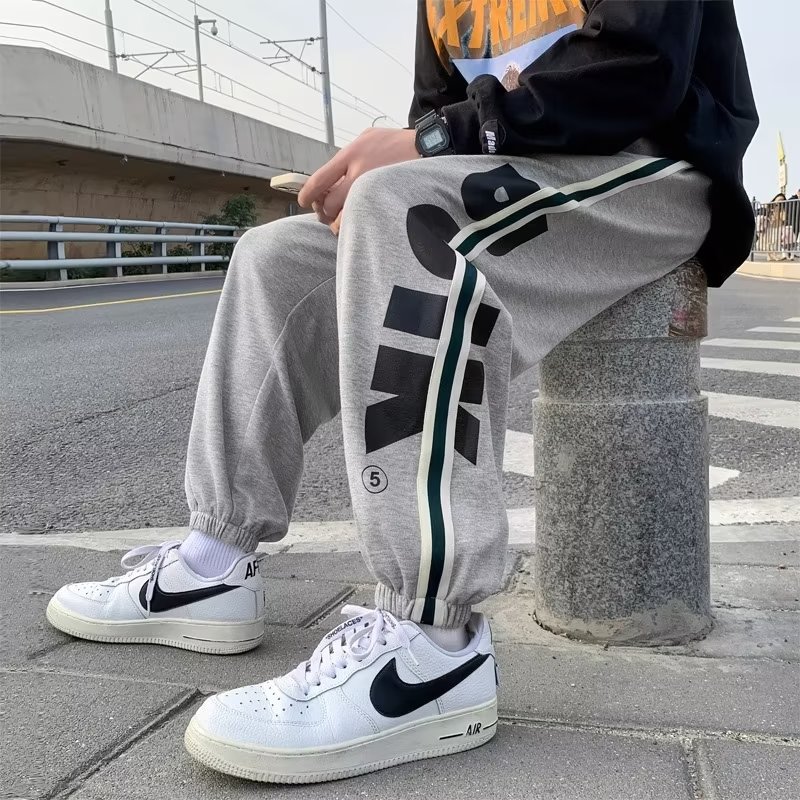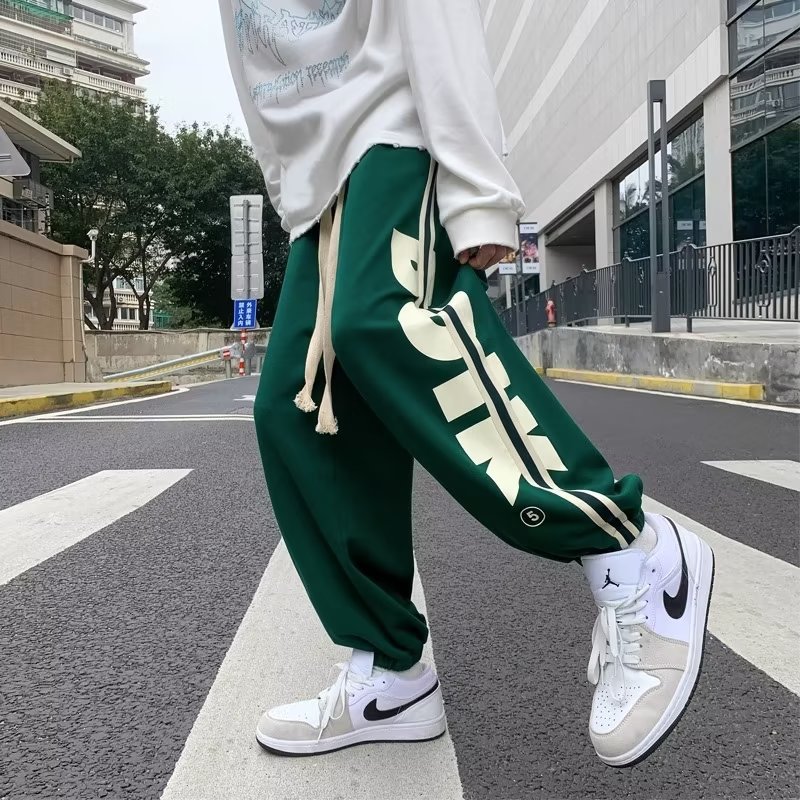 夏季美式vibe裤子男大码运动裤休闲宽松胖子春秋卫裤男款潮牌