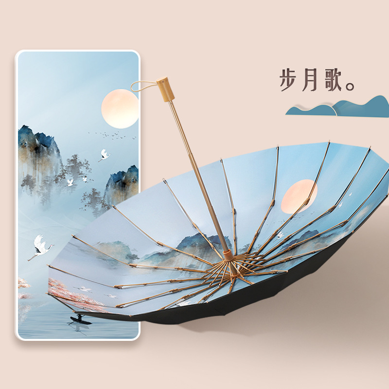 新款16骨古风伞防晒防紫外线遮阳伞男女折叠伞晴雨两用伞