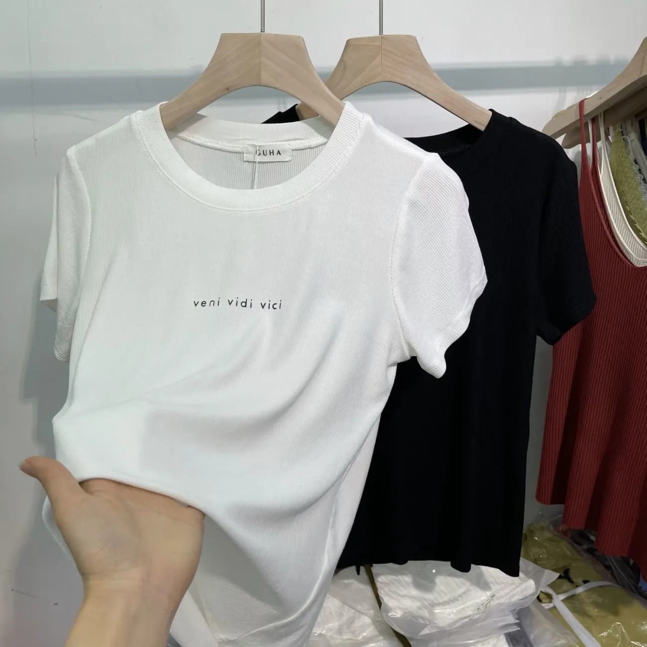 欧货螺纹短袖t恤女新款洋气百搭修身上衣半袖显瘦体恤打底衫