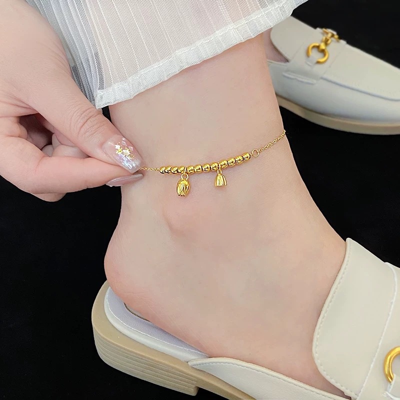 钛钢不掉色莲花脚链女新款潮轻奢高级感小众设计足链脚环