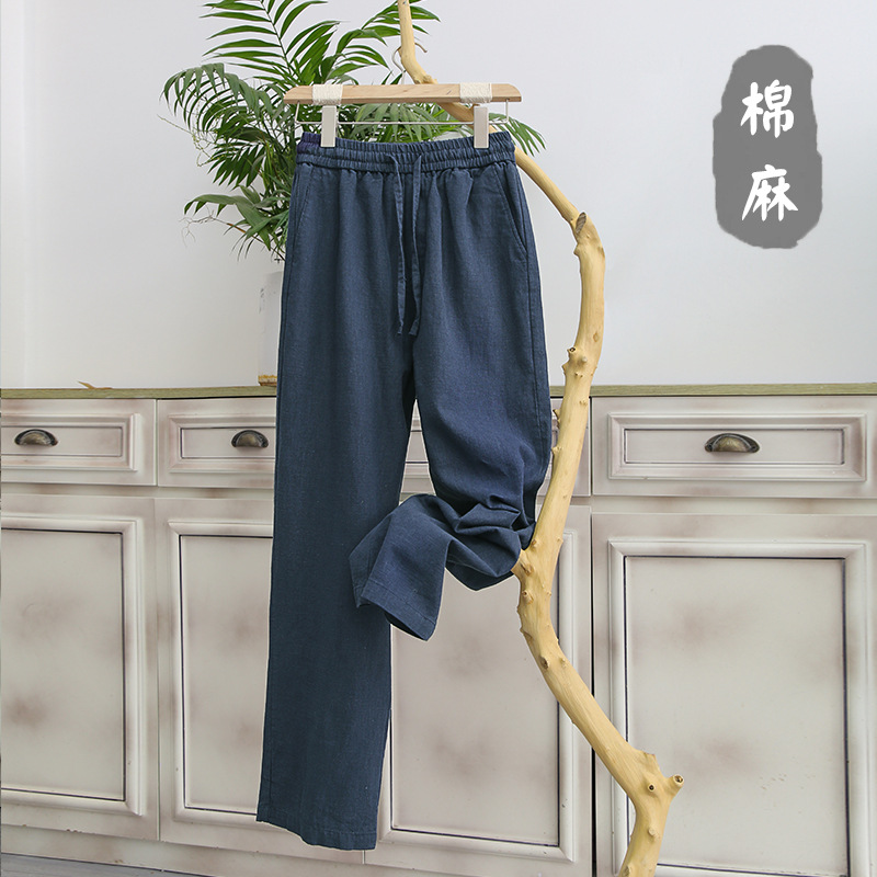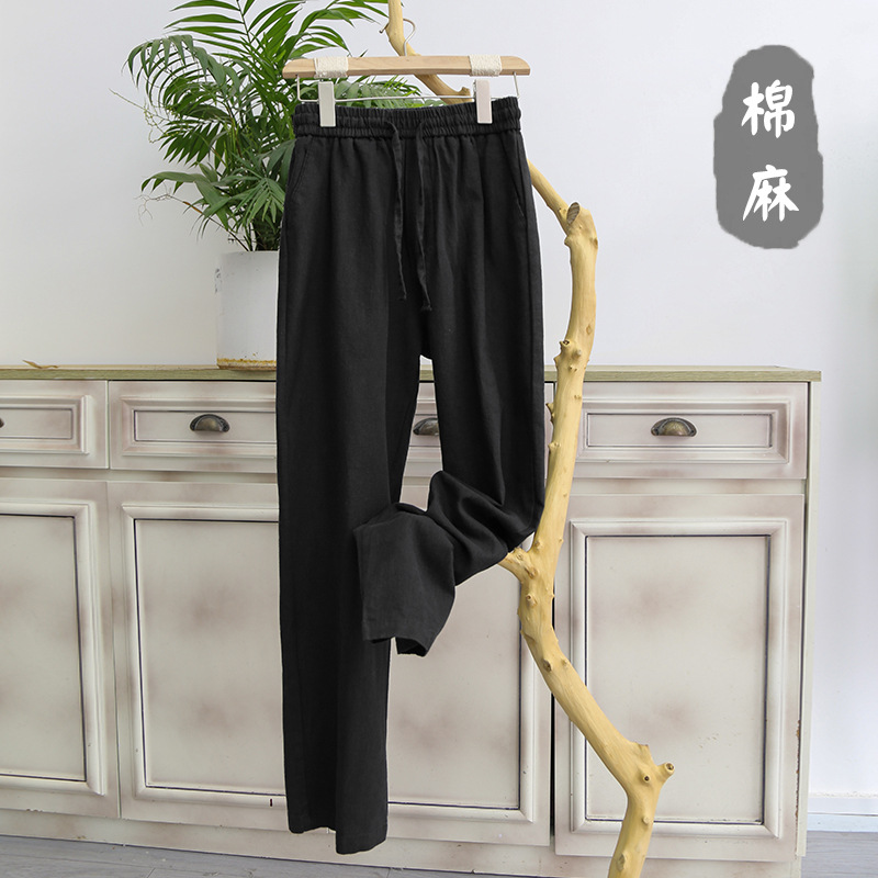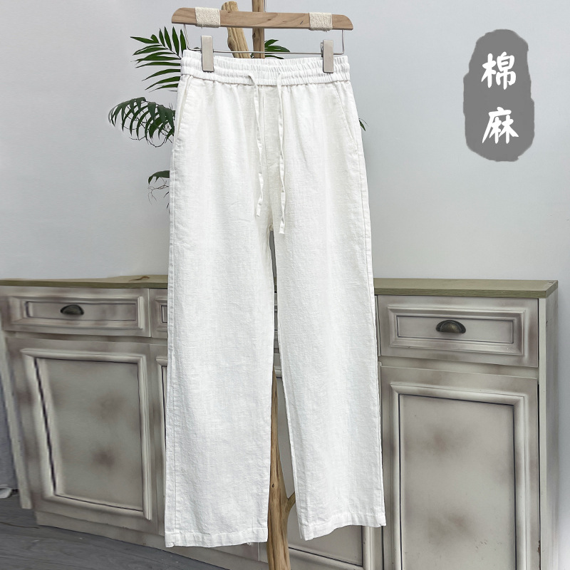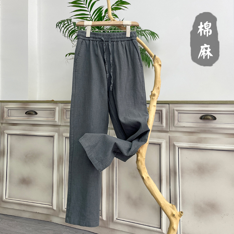 高端亚麻裤子男夏季薄款棉麻长裤男士休闲裤宽松苎麻料阔腿直筒裤