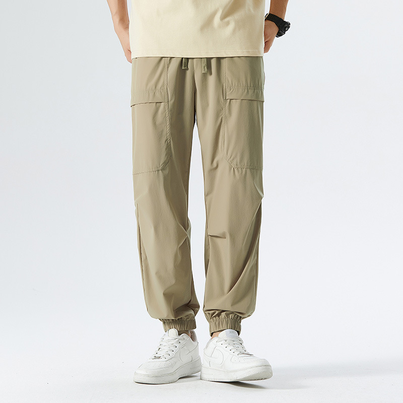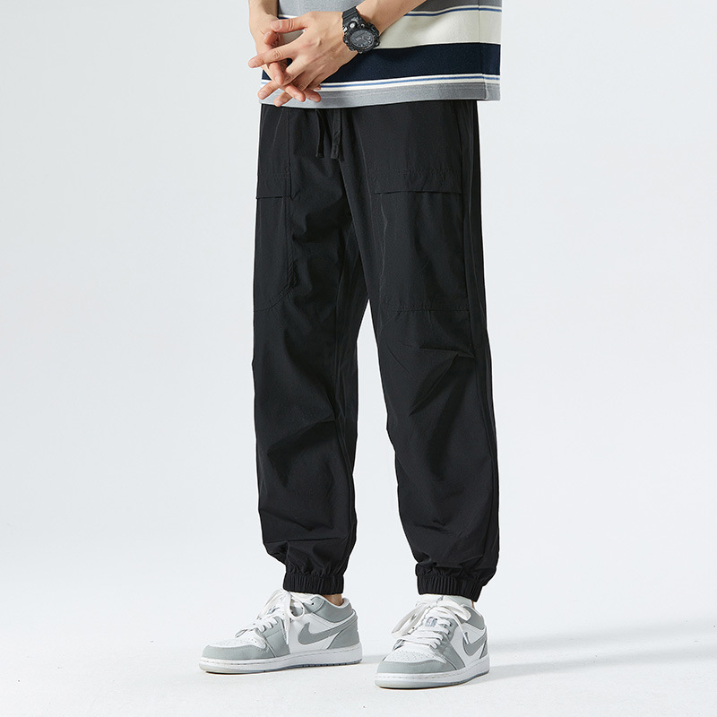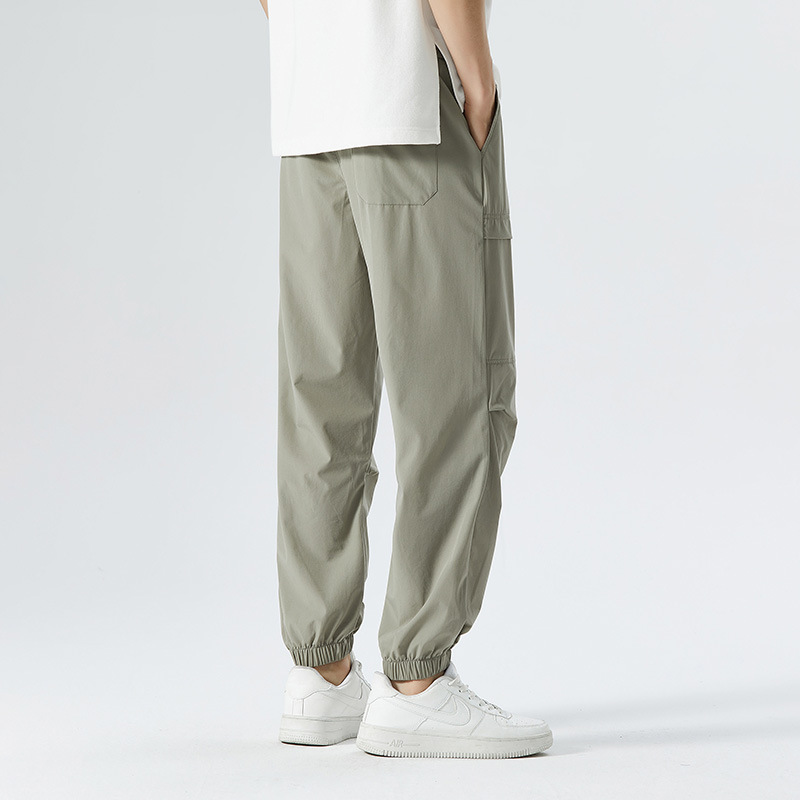 裤子男夏季薄款冰丝男士休闲裤潮牌速干透气运动裤束脚九分裤男款