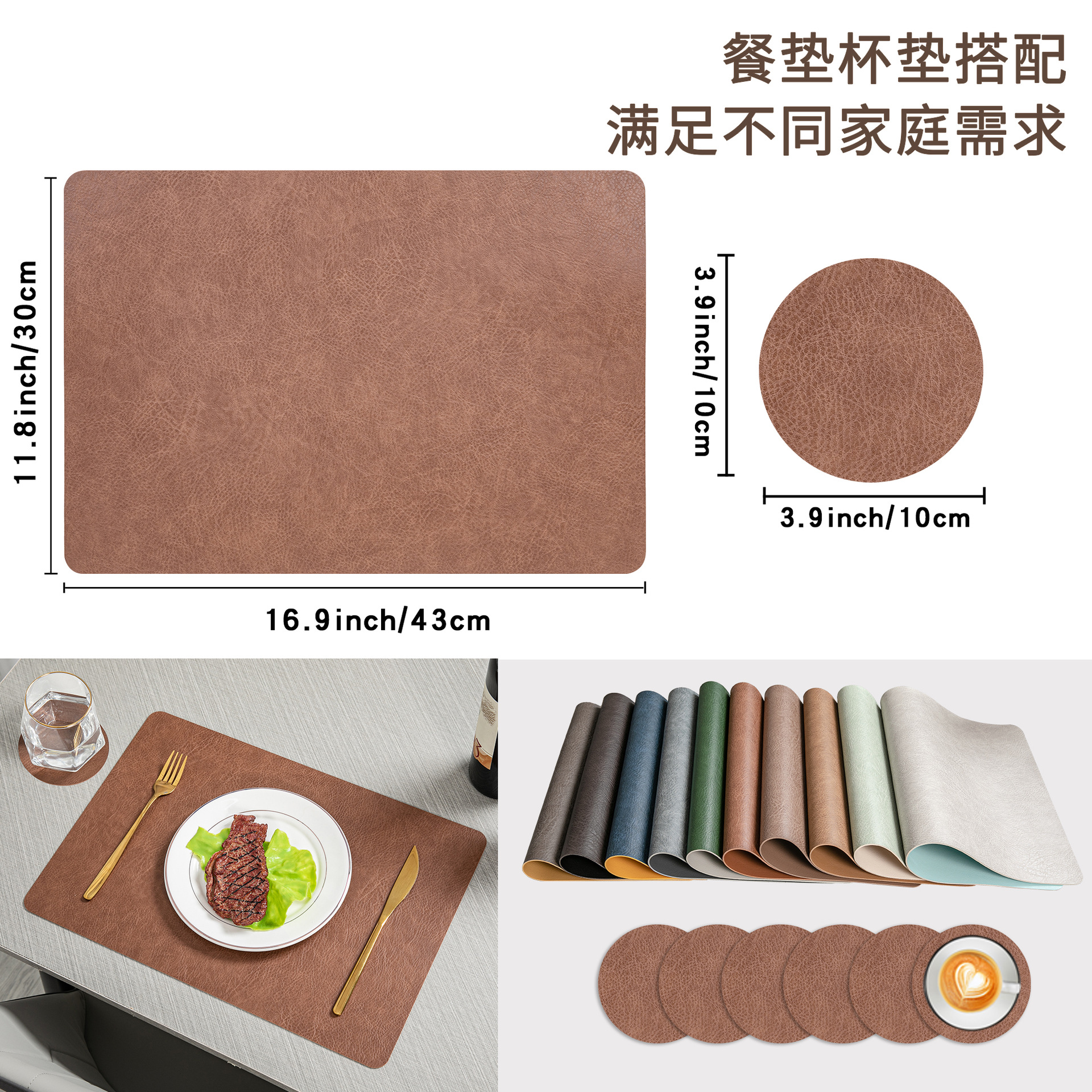 牛皮纹餐垫防热防水防油污方形皮革隔热垫锅垫轻奢餐桌垫杯垫