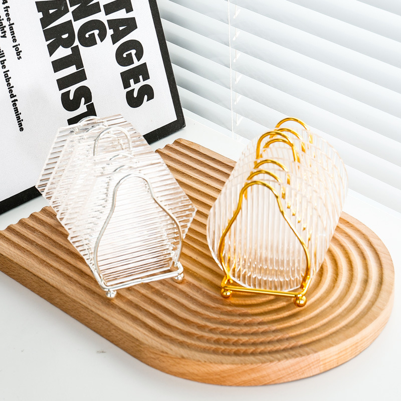 六边形条纹杯垫6片-金色碳钢架D11