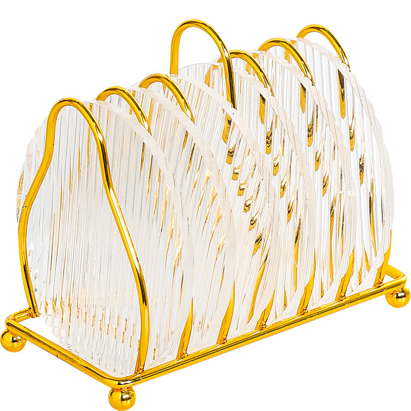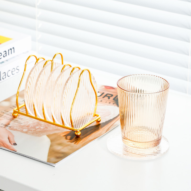 圆形条纹杯垫6片-金色碳钢架D11