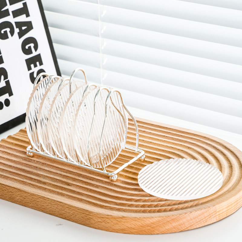 圆形条纹杯垫6片-银色碳钢架D11