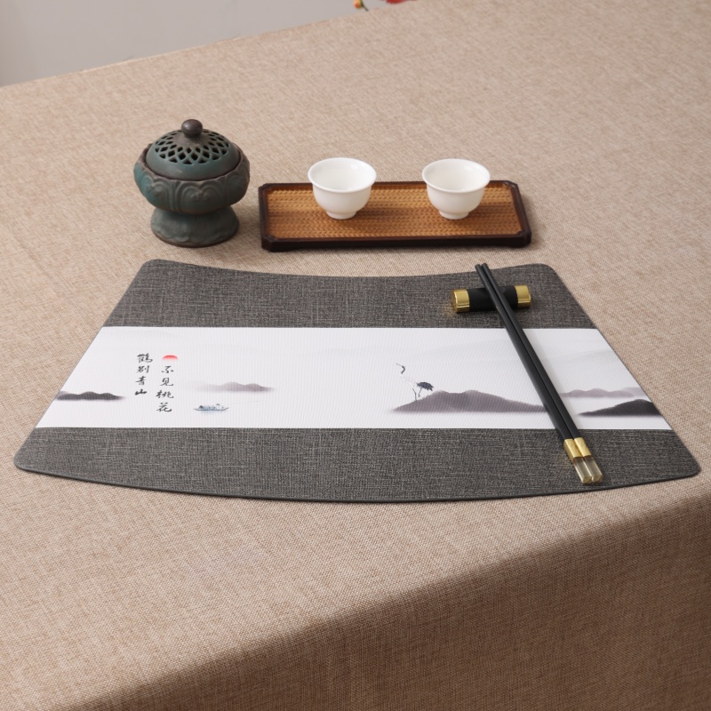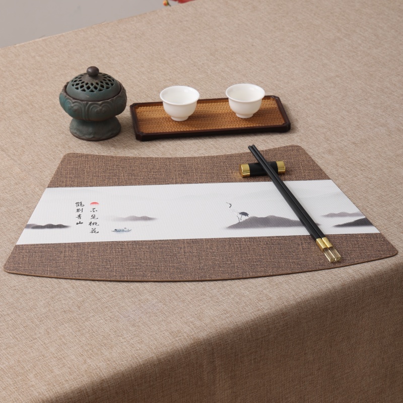 扇形中式酒店专用皮革圆桌餐桌垫餐垫防水防油餐具垫高级感隔热垫