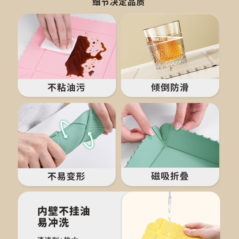 - 米白色*1【食品级硅胶】可磁吸折叠收纳/一物多用