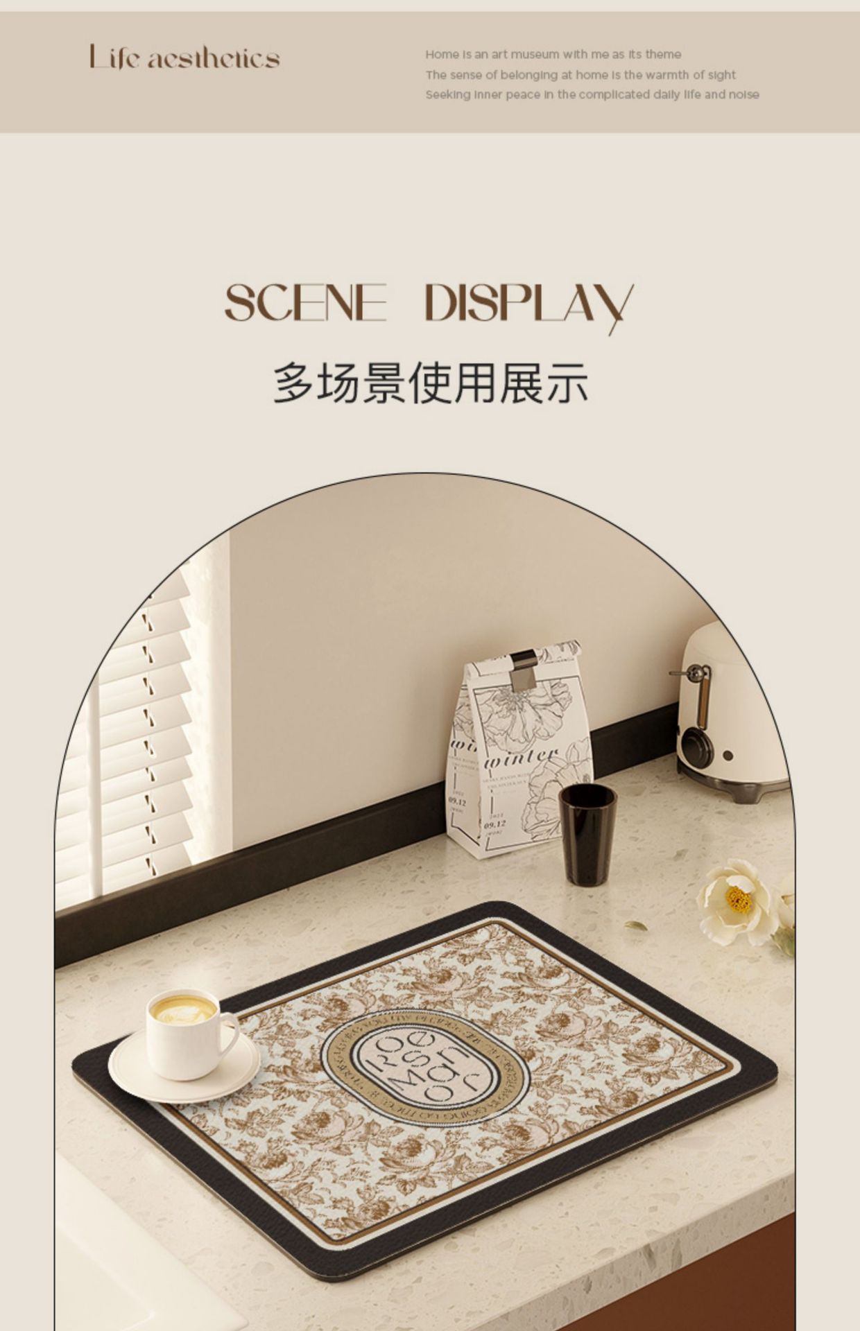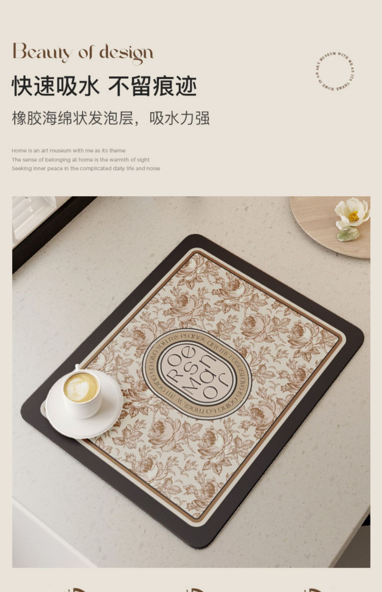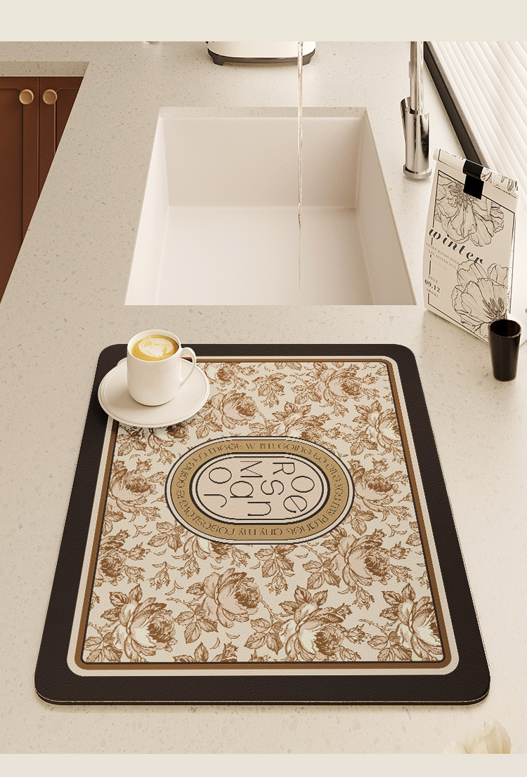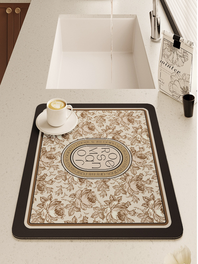 玫瑰庄园法式复古免洗厨房沥水垫吸水防滑家用高级感耐磨耐刮桌布