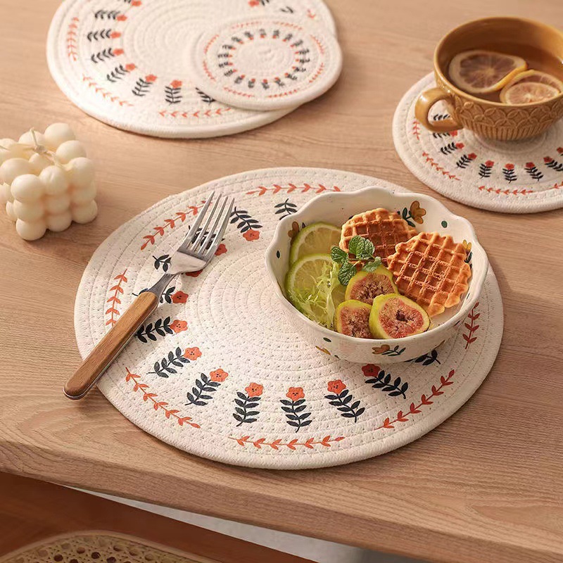 棉麻编织隔热垫高级感轻奢家用餐桌防烫桌垫砂锅垫碗垫杯垫盘子垫