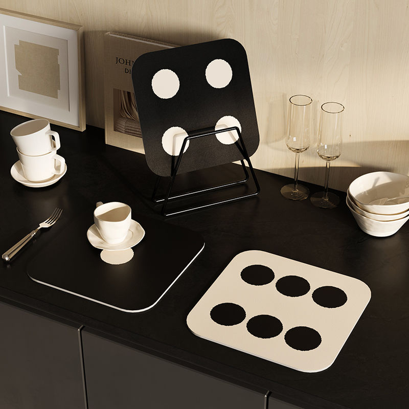 黑白骰子硅藻泥吸水杯垫轻奢高级感防滑隔热垫家用