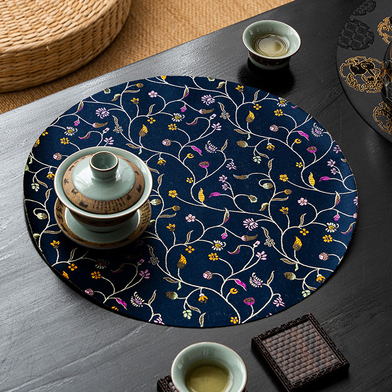 织锦锻软缎禅意小茶席复古风布艺中式高端桌垫布双面茶垫