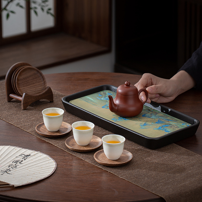 胡桃木创意茶杯垫家用茶道茶杯咖啡隔热垫套装杯垫木质杯垫