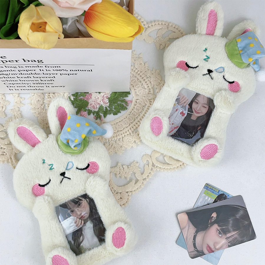 可爱睡帽腮红兔毛绒卡套晚安兔小卡展示挂件爱豆收纳照片卡套