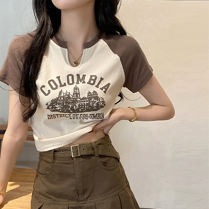 辣妹正肩短袖T恤女夏季甜辣美式复古设计感小众独特短款上衣