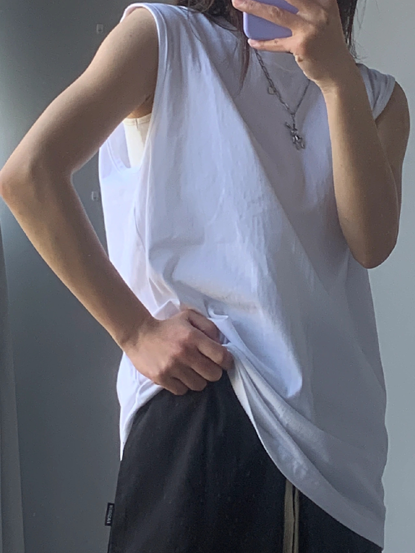 宽肩白色打底衫圆领港味背心女跨境夏季新款宽松无袖T恤上衣外穿