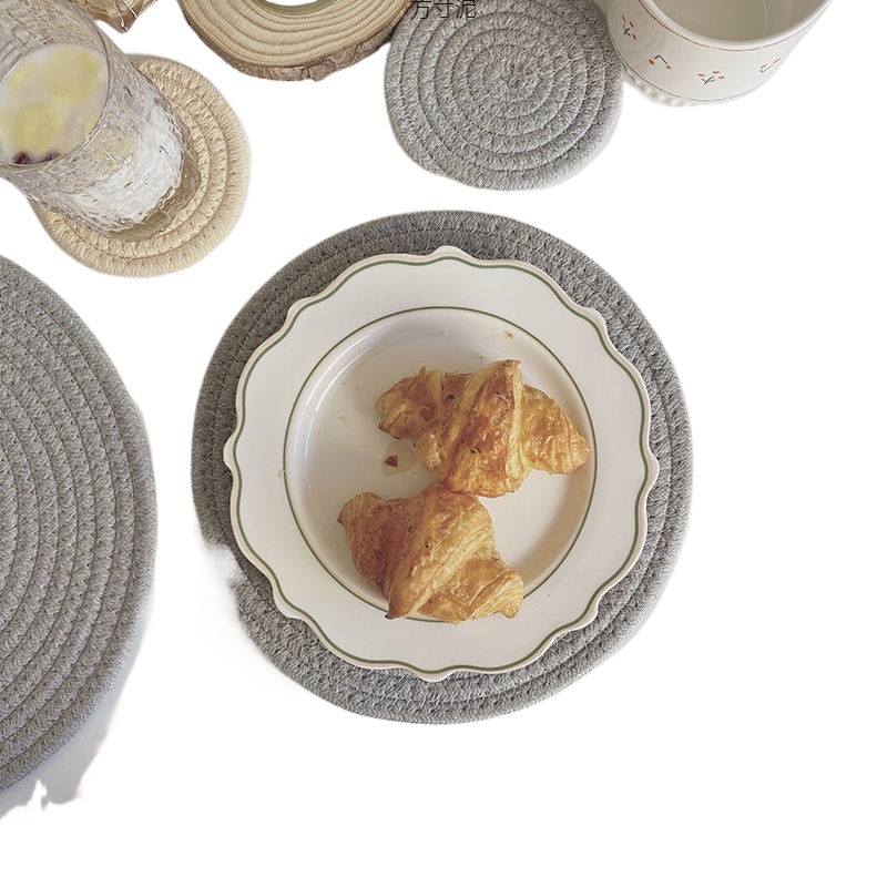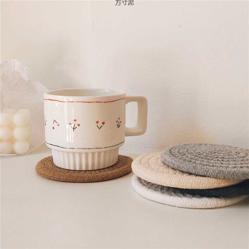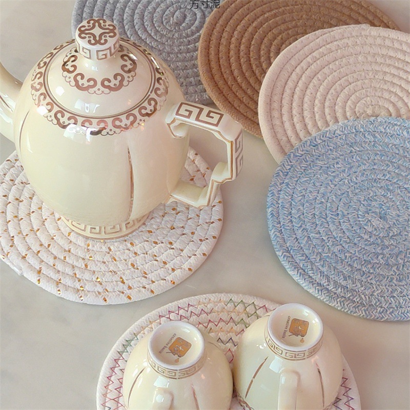 简约韩风日式编织棉线杯垫圆形色家用加厚耐热垫子