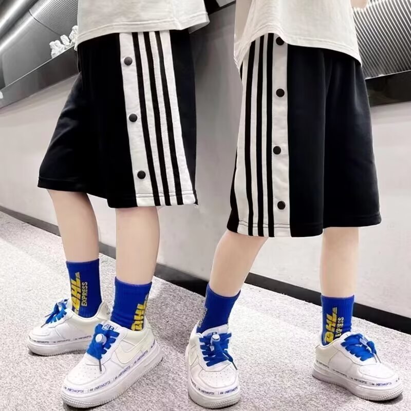 运动短裤男童新款夏季排扣高街时髦儿童五分裤外穿休闲七分裤