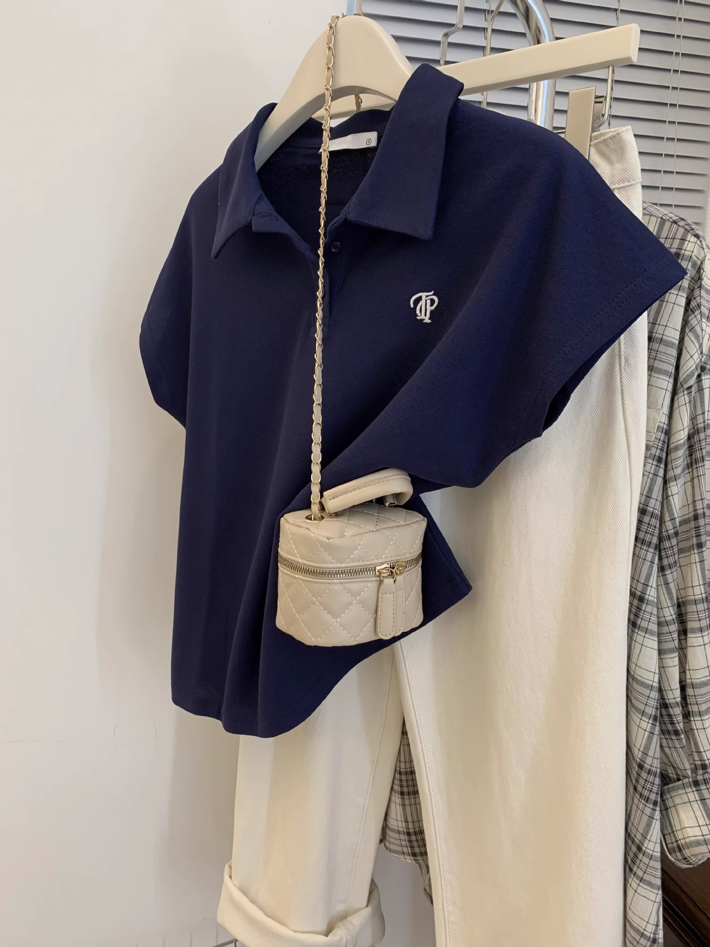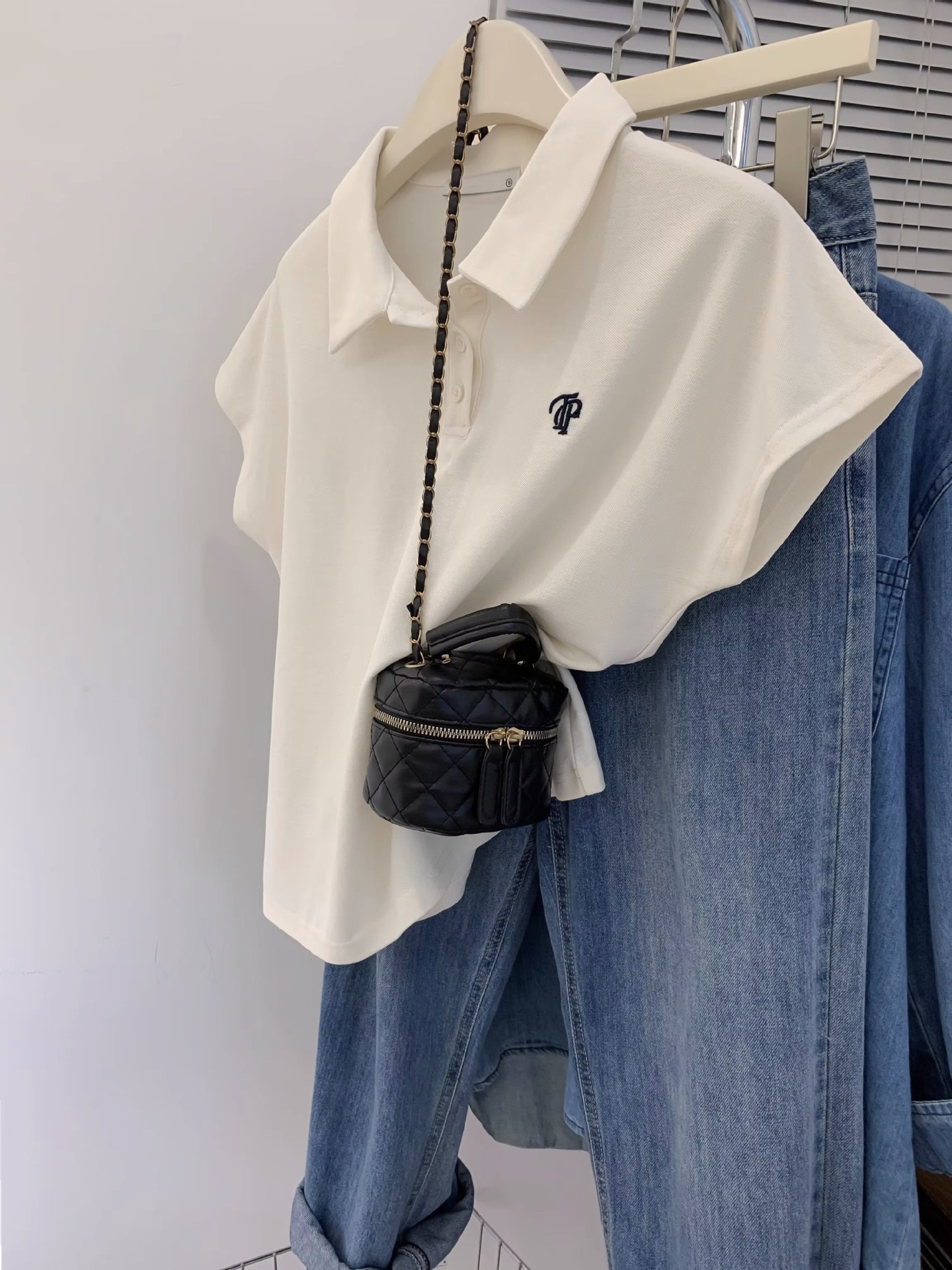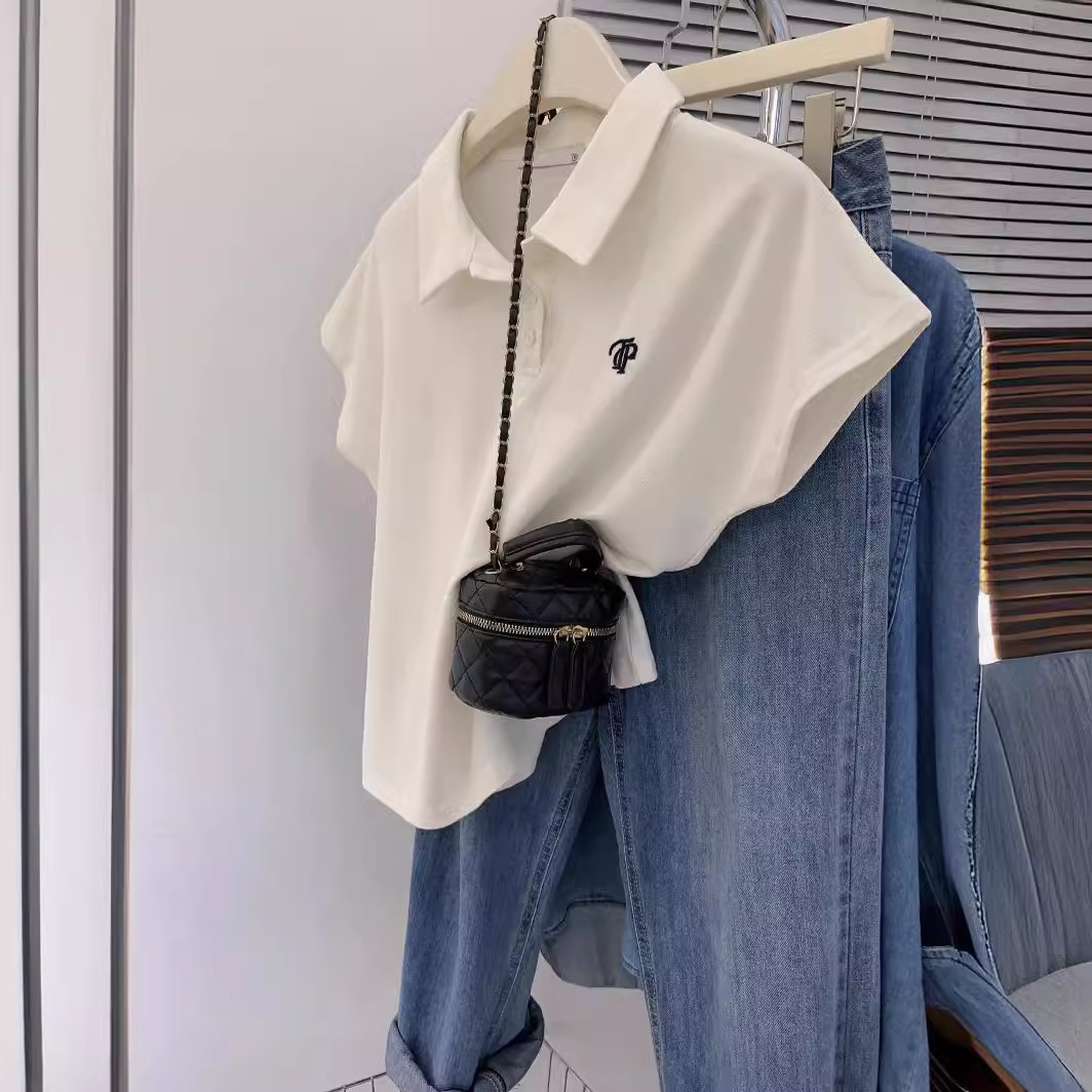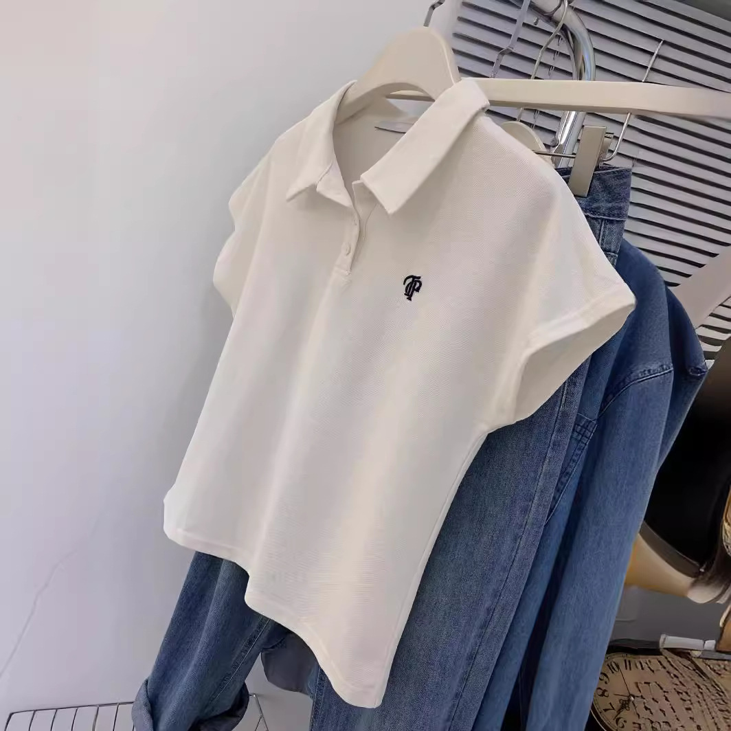 美式胖mm夏季显瘦polo领T恤女高级感小众ins潮牌港风显瘦短袖上衣