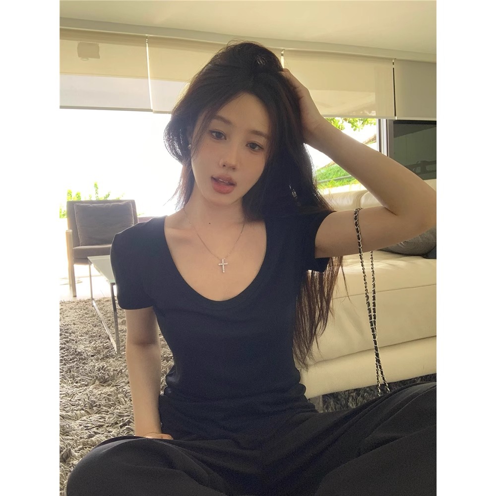 纯欲甜辣妹白色短袖t恤女镂空设计感打底衫内搭修身显瘦半袖上衣