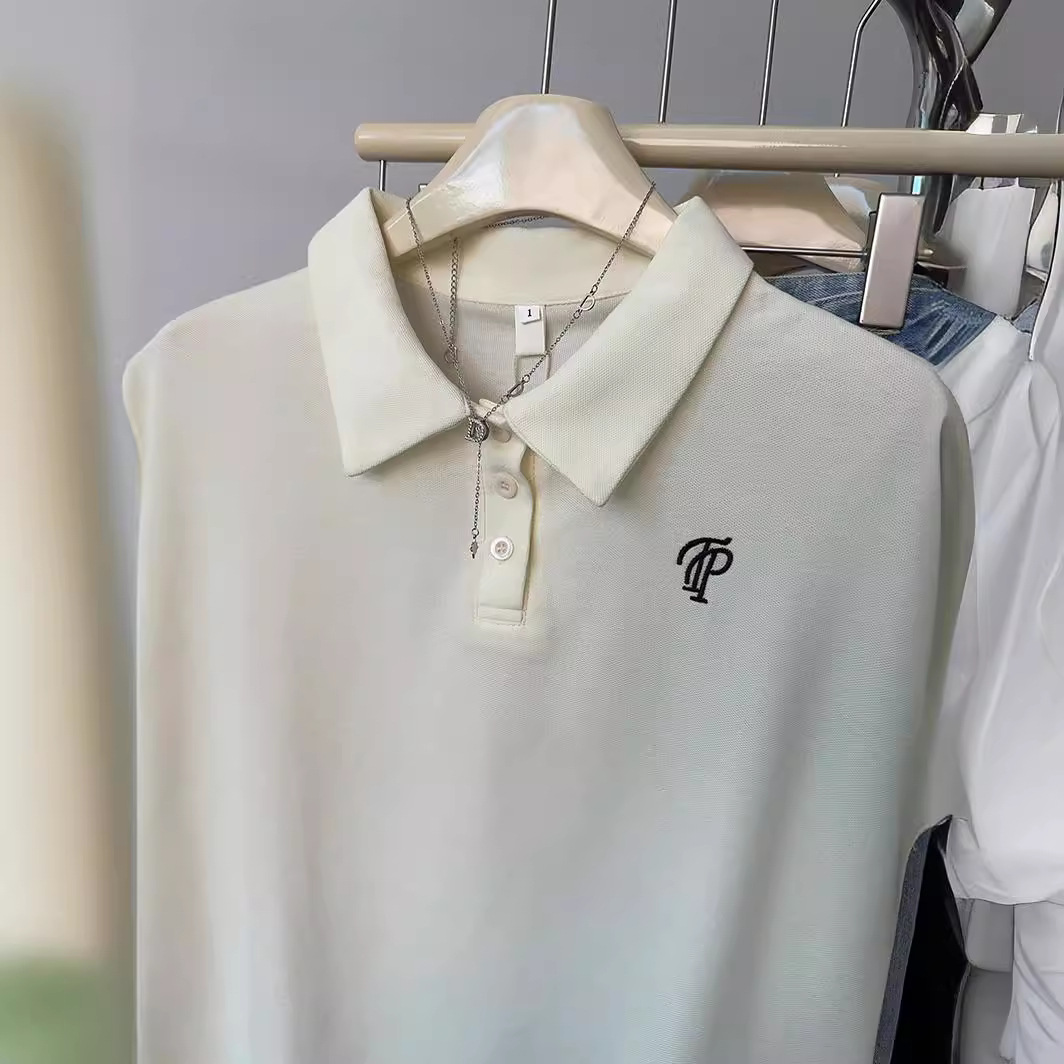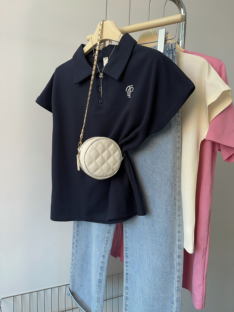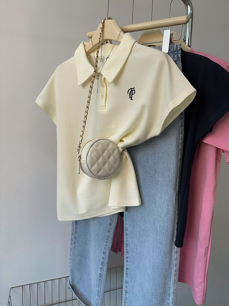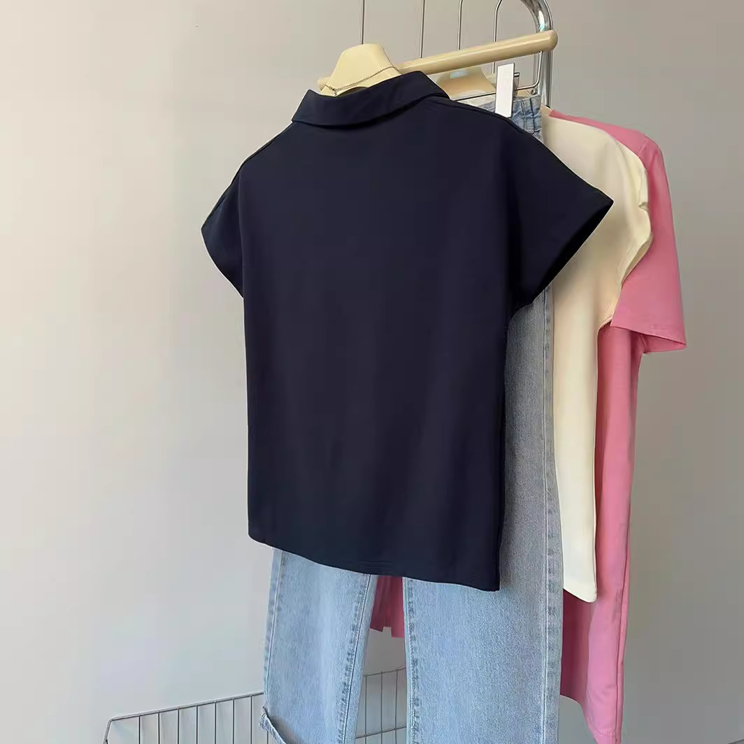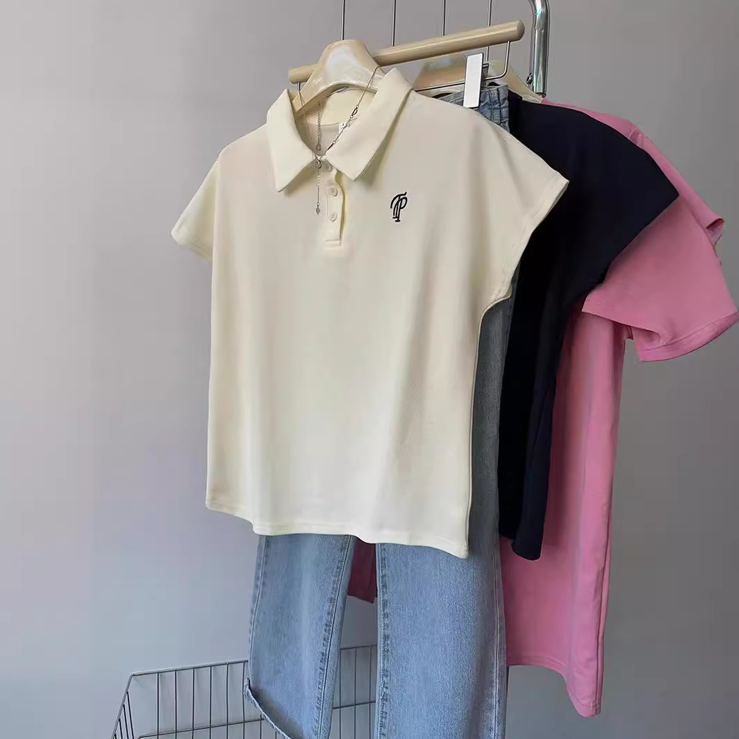 正肩polo衫翻领t恤女夏设计感小众小个子多巴胺穿搭大码短袖上衣
