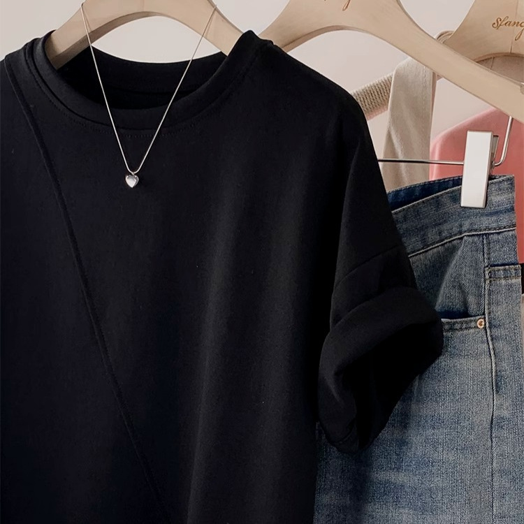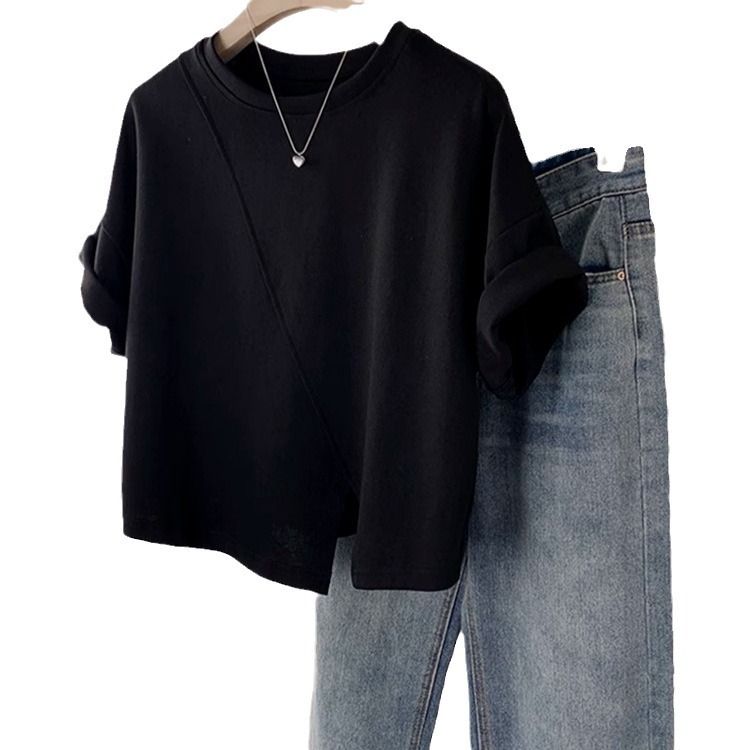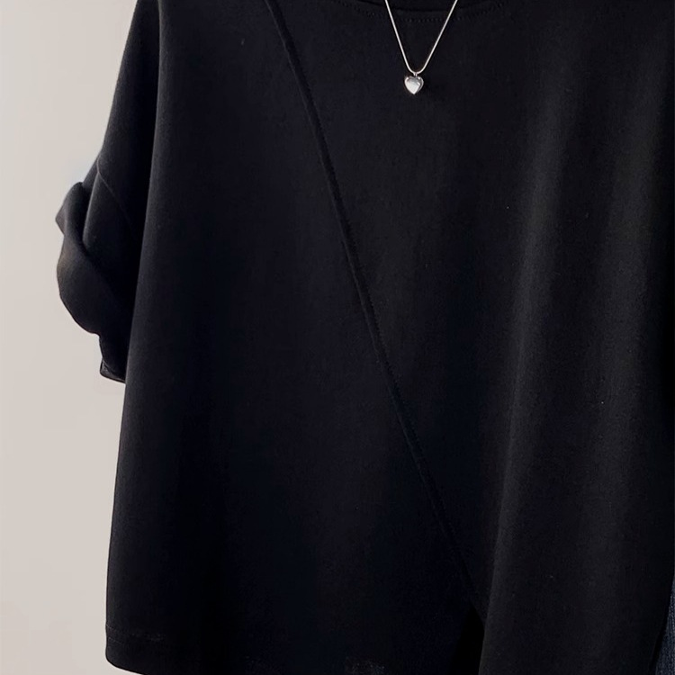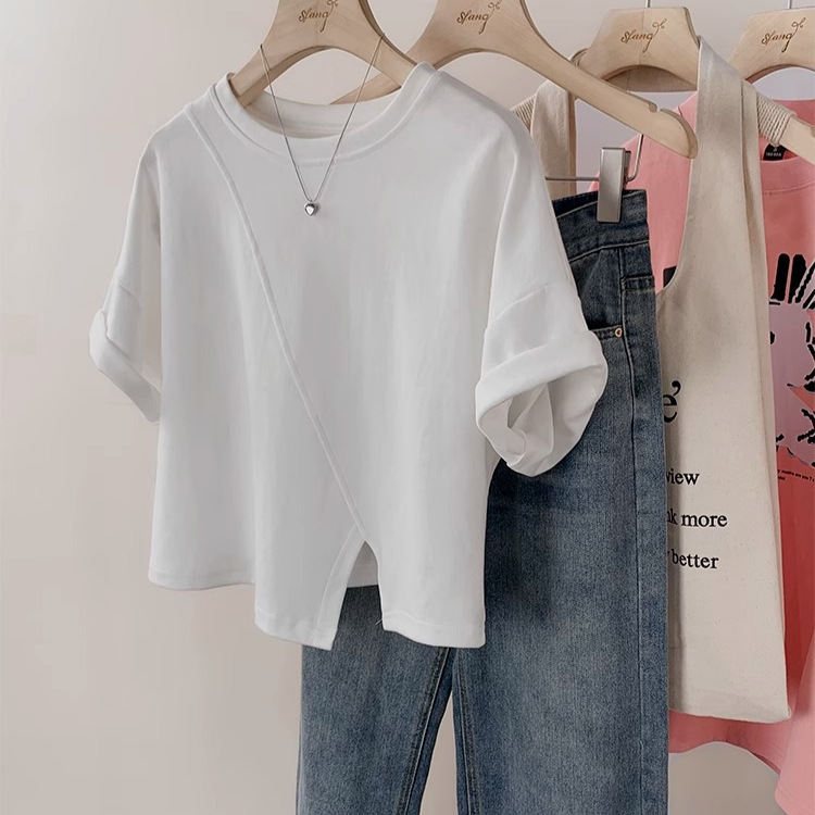 设计感小众开叉下摆短袖T恤女夏季时尚宽松短款小个子上衣半袖潮