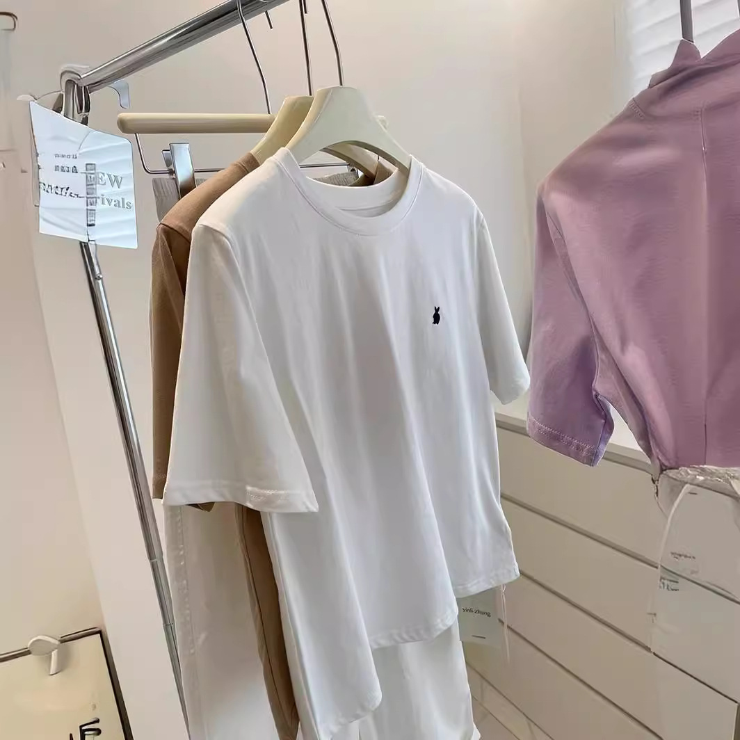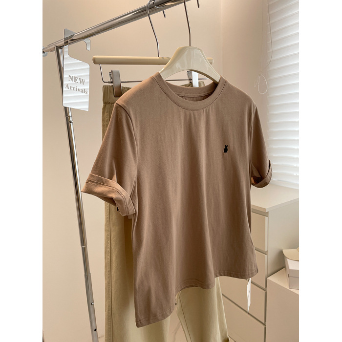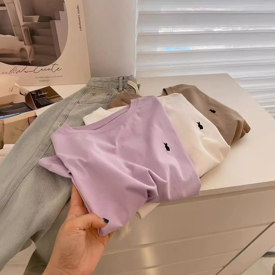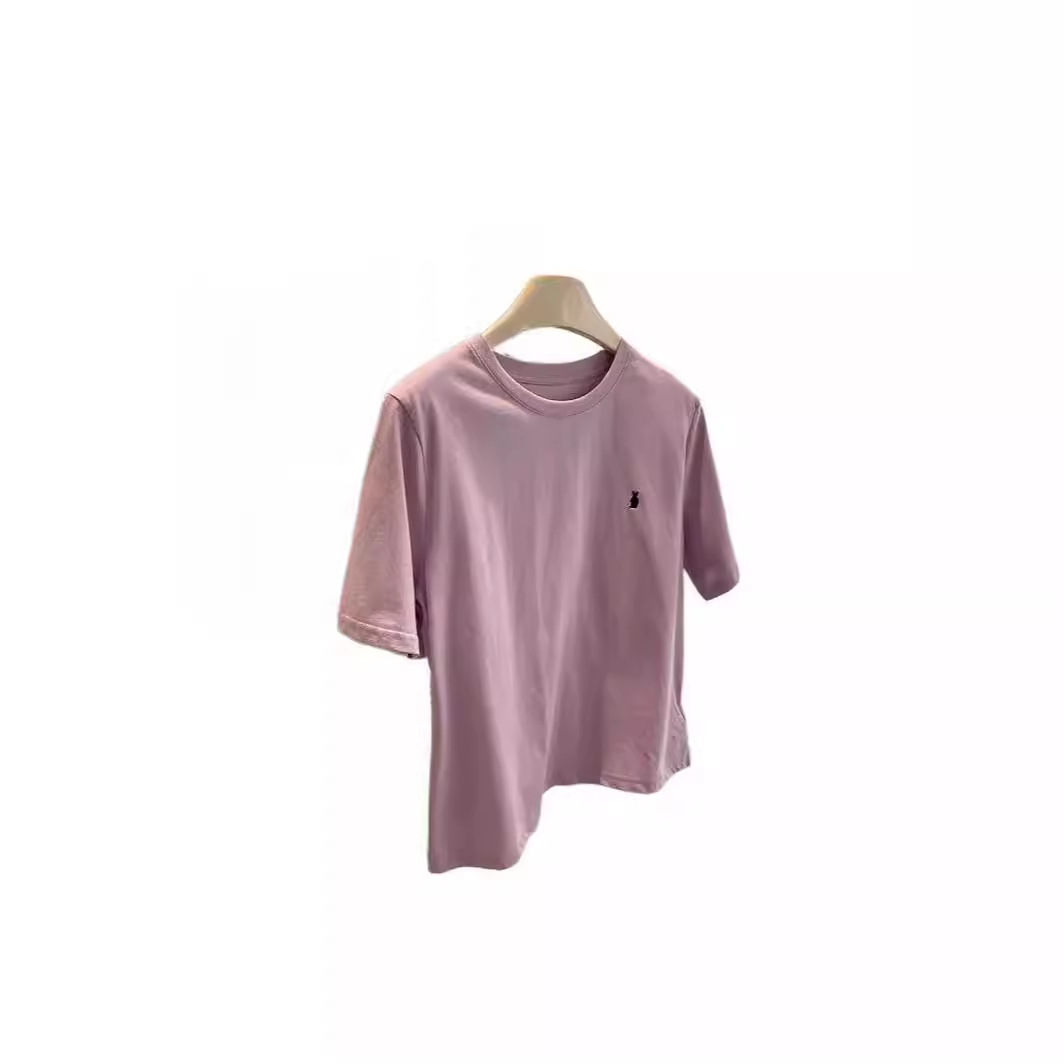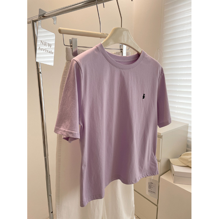 韩系紫色短袖t恤女夏新款宽松清新百搭字母印花薄款纯棉体恤上衣
