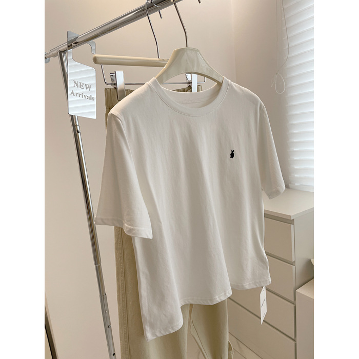 新刺绣儿童短袖t恤夏装木耳边打底衫小女孩宝宝可爱洋气上衣