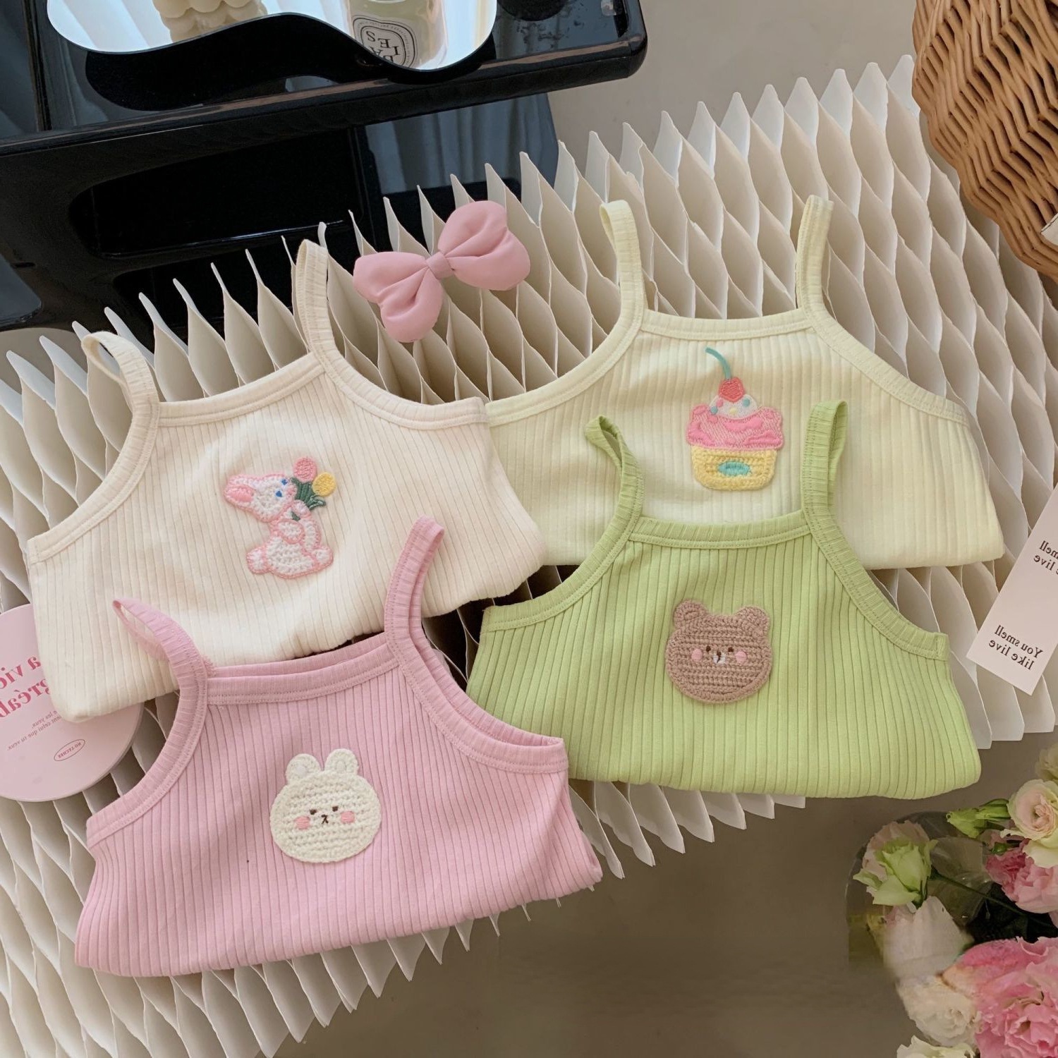 女童夏装背心吊带宝宝洋气儿童个性潮牌多巴胺女孩糖果色可爱卡通