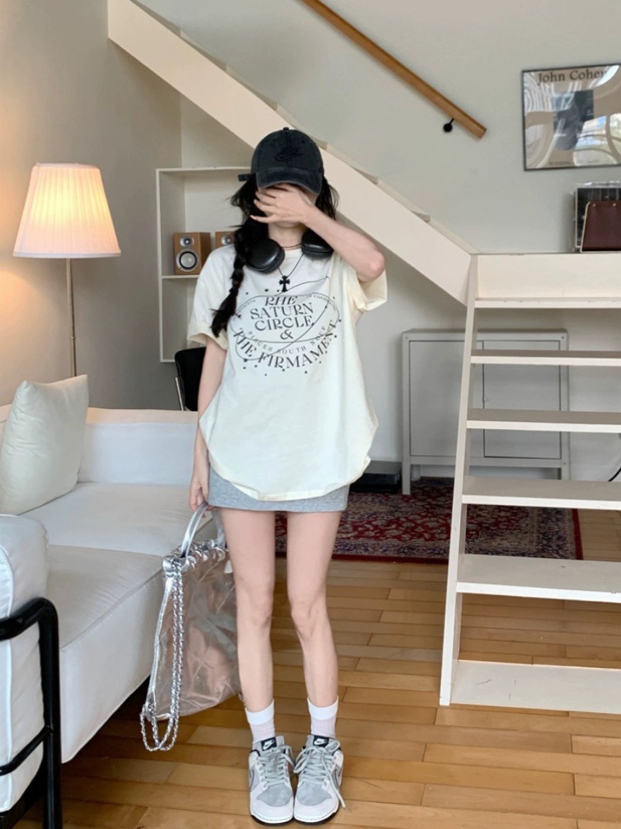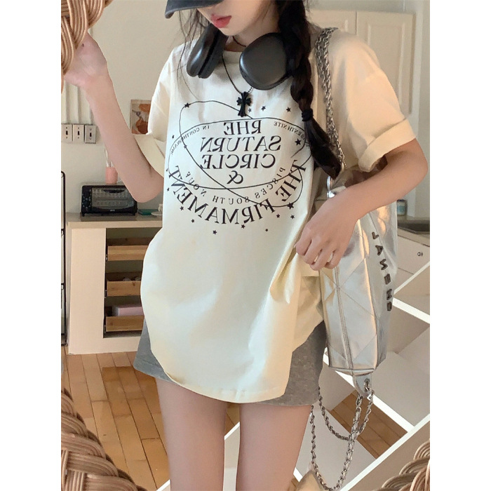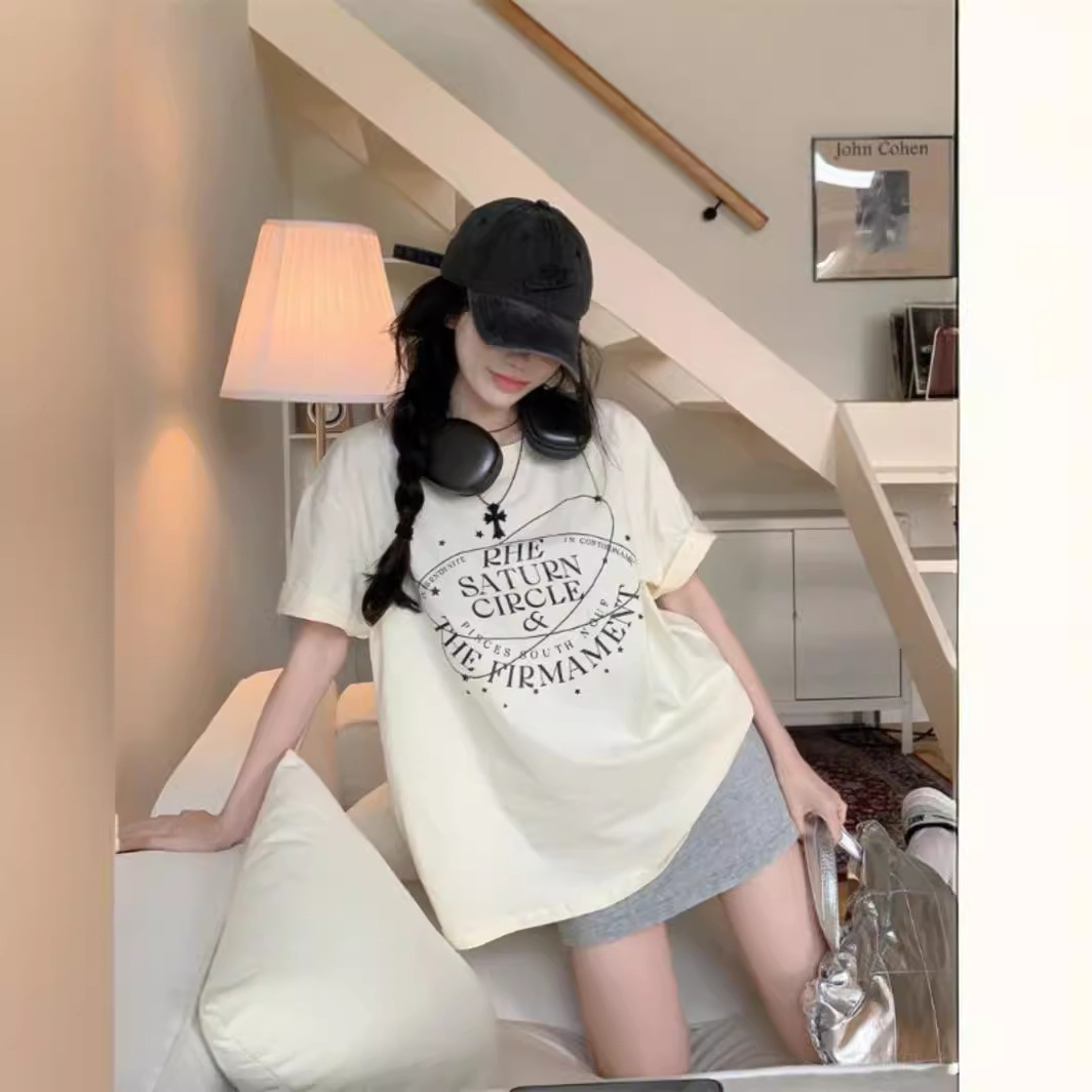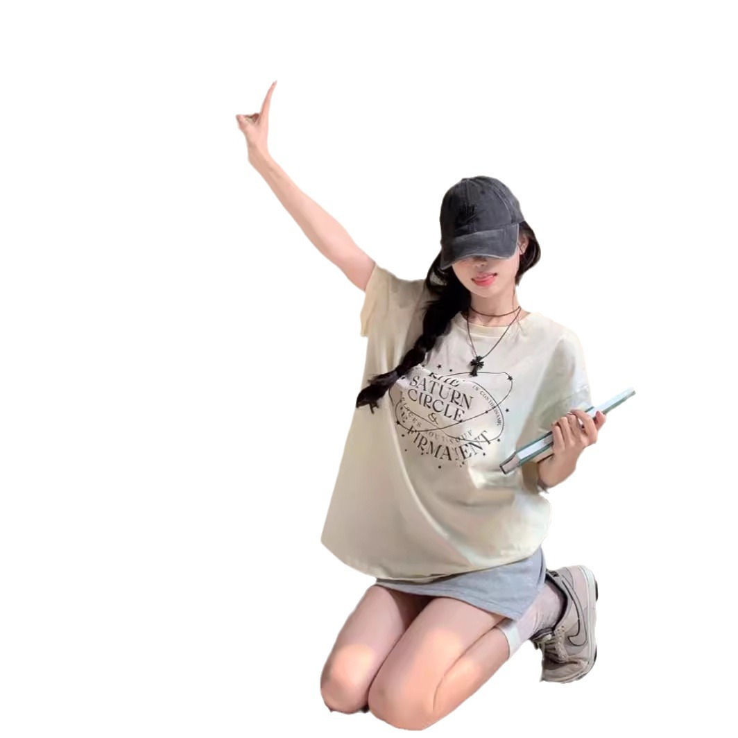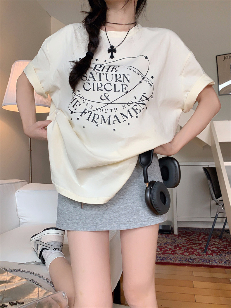 美式字母印花纯棉夏季新款T恤女圆领休闲宽松短袖设计感上衣