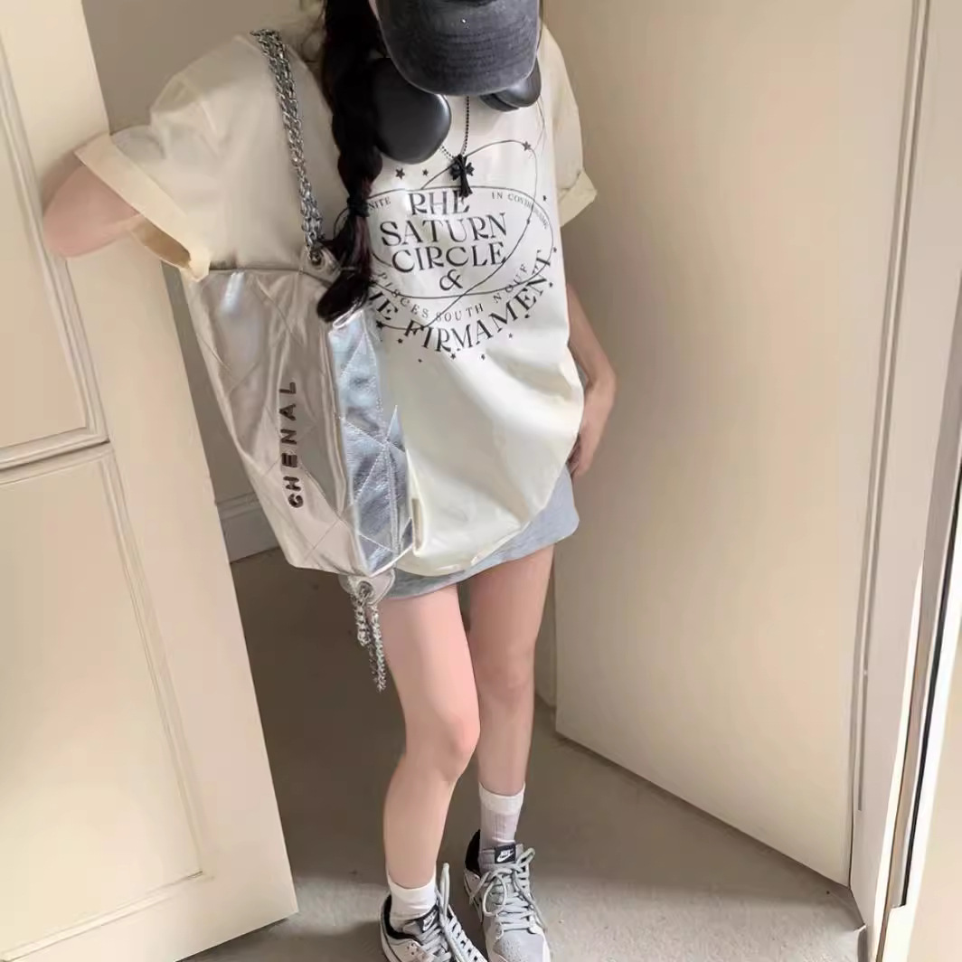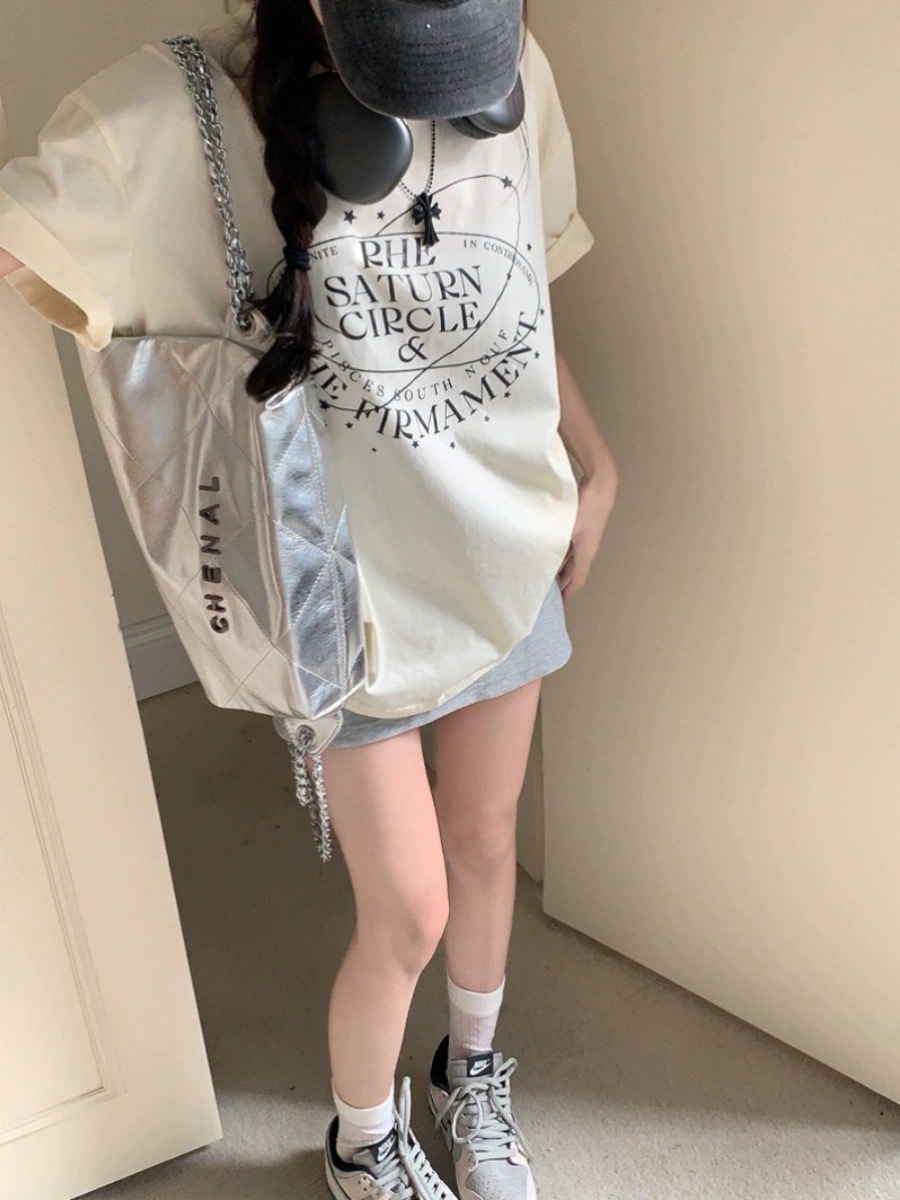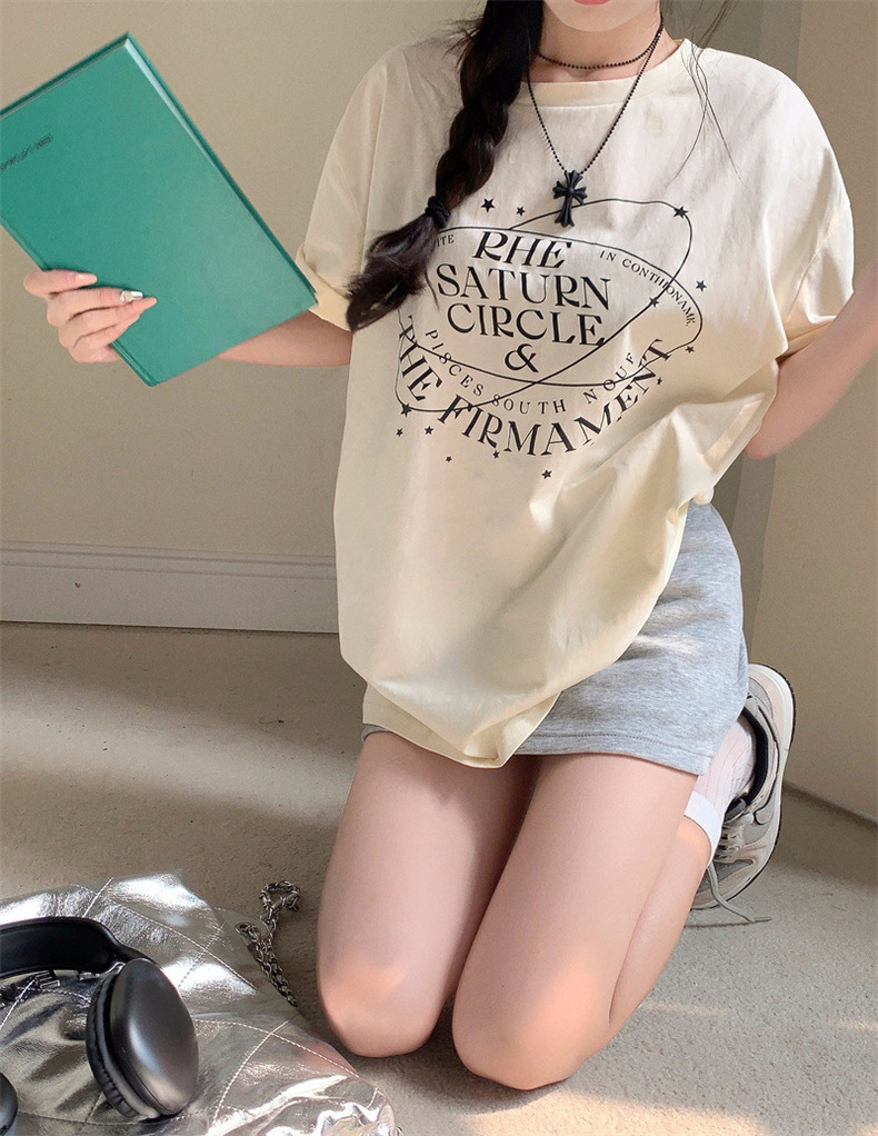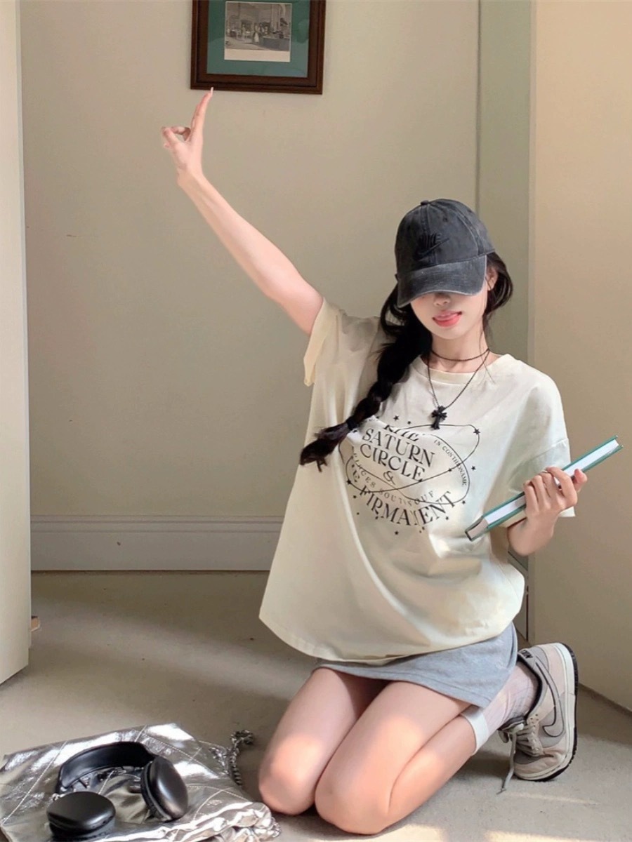 美式字母印花纯棉夏季新款T恤女圆领休闲宽松短袖设计感上衣