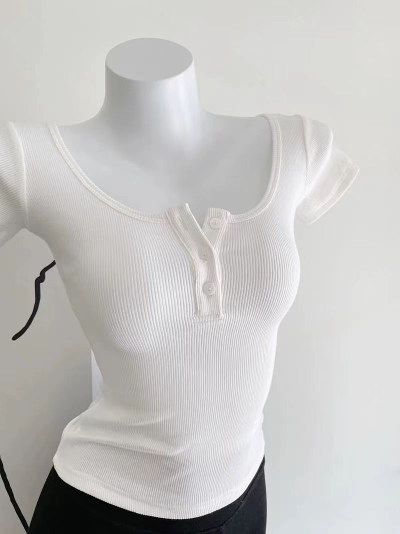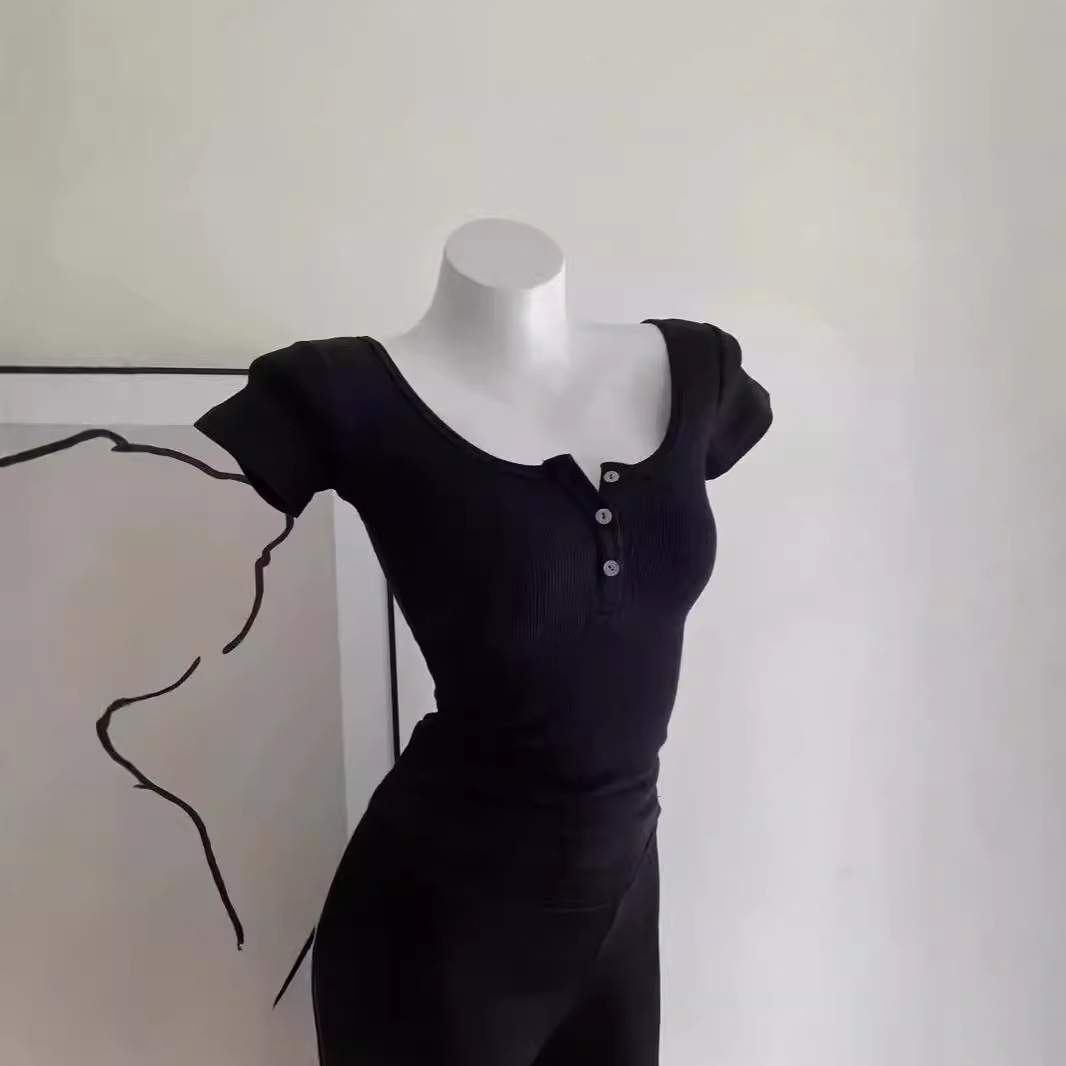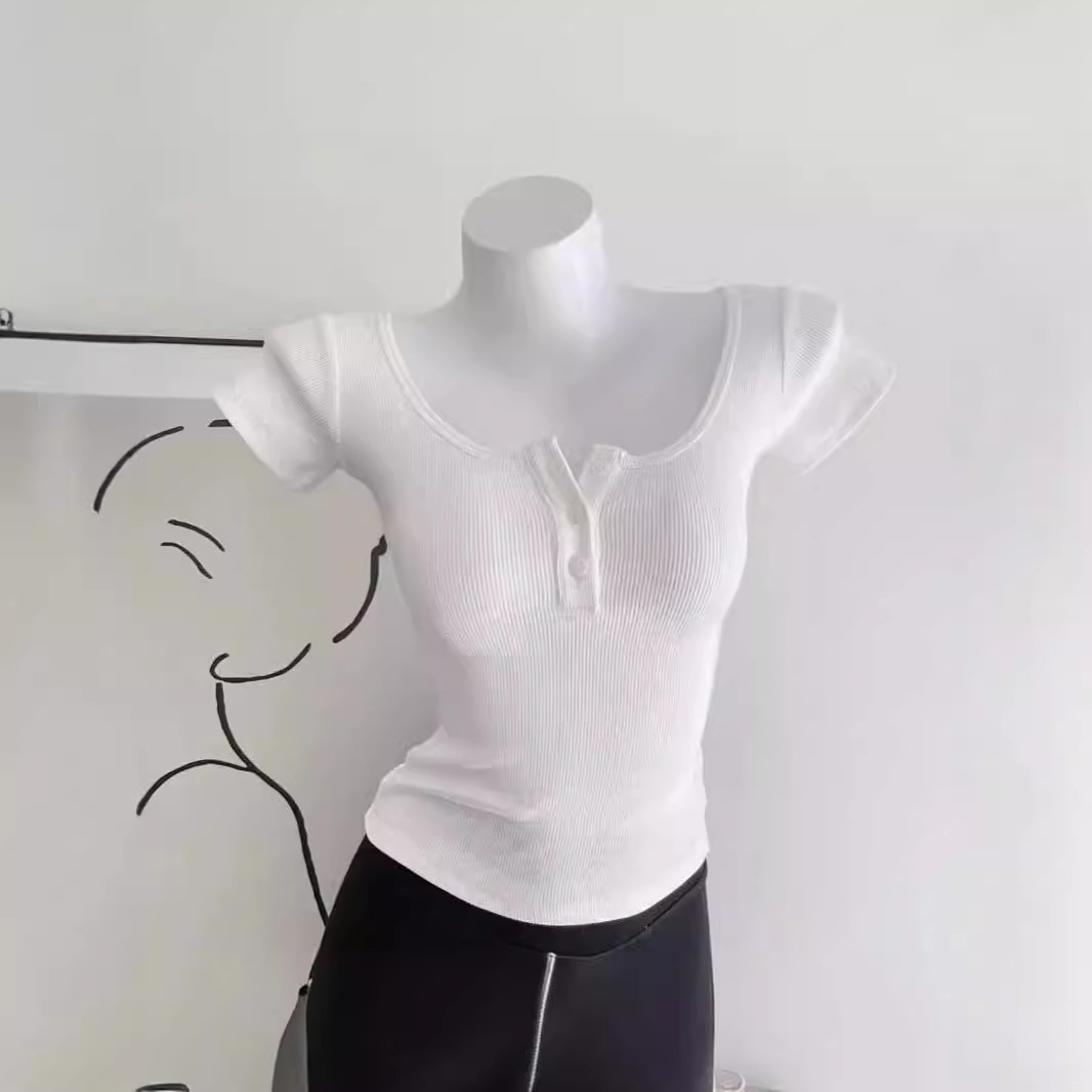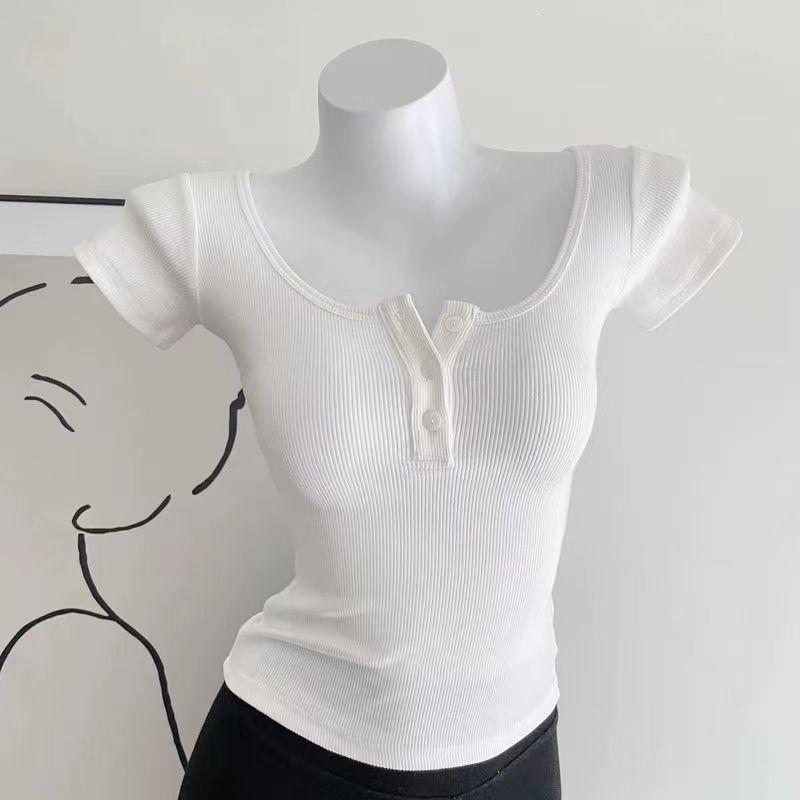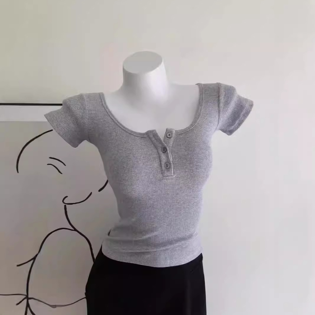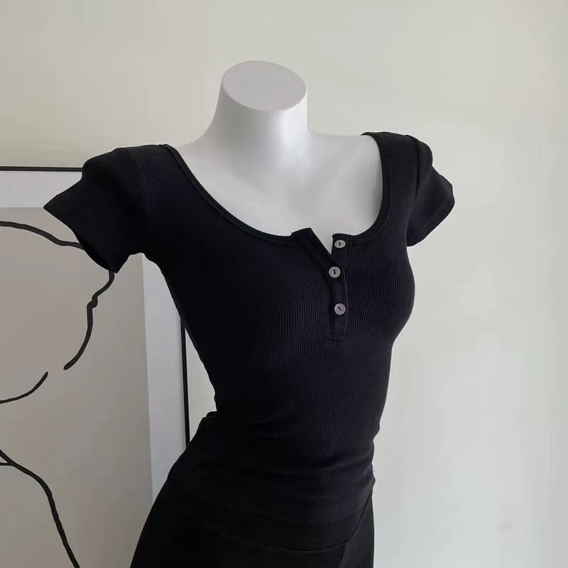 美式正肩短袖T恤女夏新款修身显瘦辣妹锁骨高级基础款上衣女