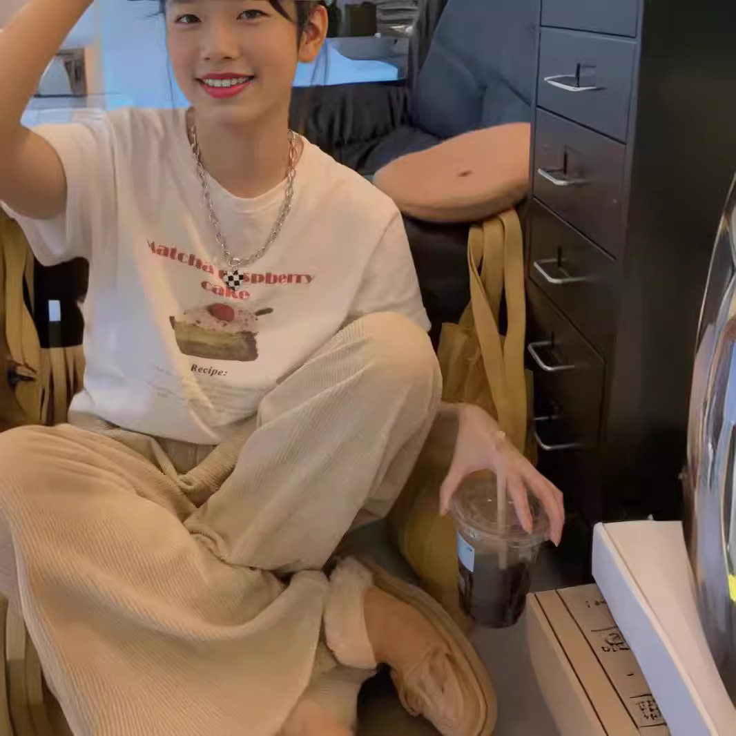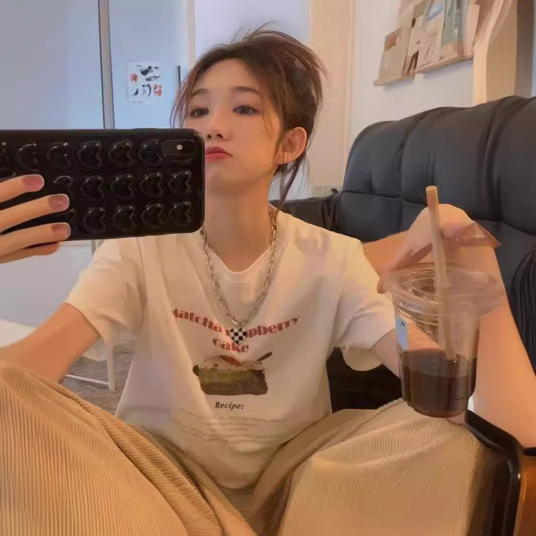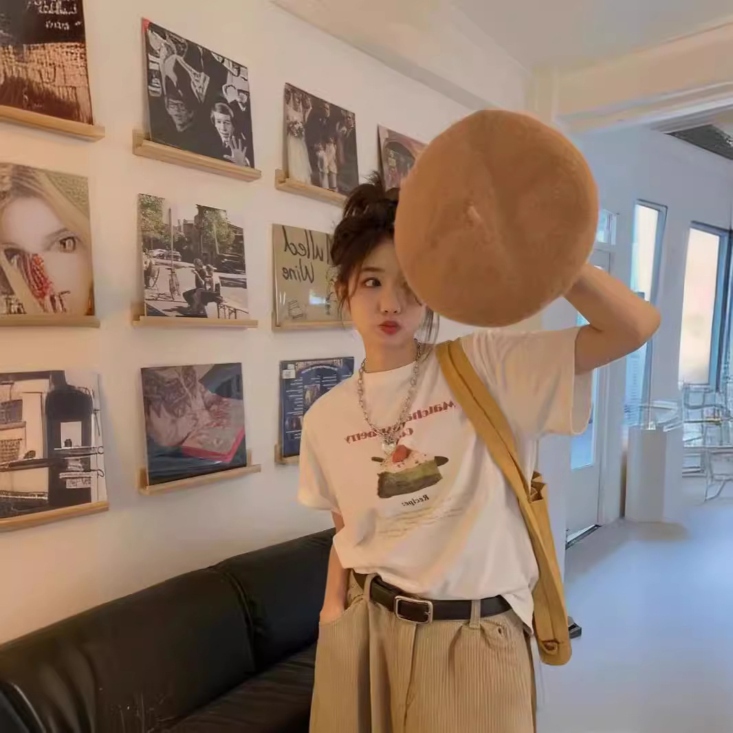 莫代尔小熊字母印花短袖T恤女夏季小众减龄宽松休闲百搭打底上衣